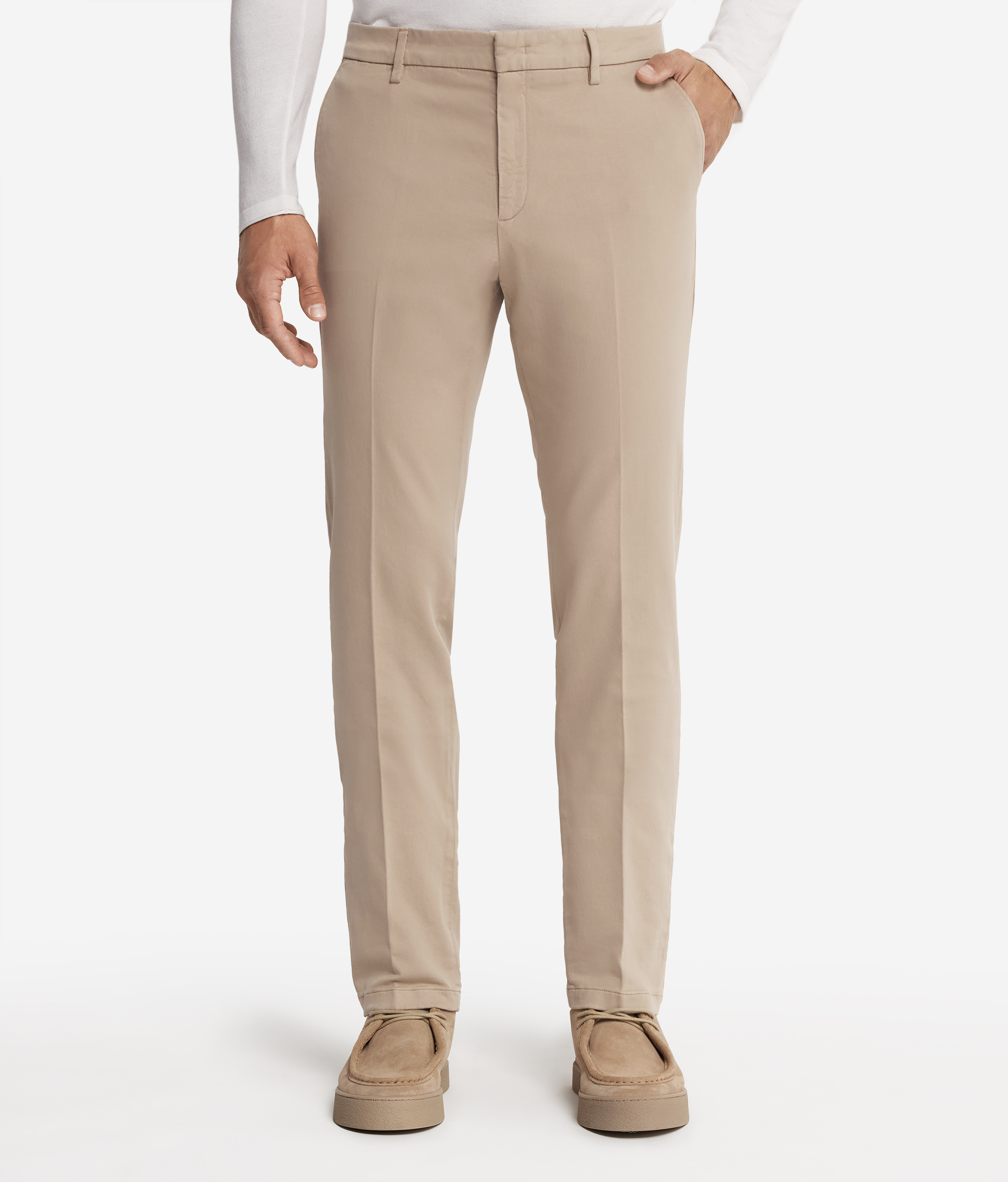 Объединяя непринуждённый изысканный силуэт и характерные элементы современного стиля, Falconeri создаёт эти брюки-чинос из мягкого эластичного хлопка, которые идеально сидят на любой фигуре и не сковывают движений. Эта модель подойдёт для любого случая и будет уместно смотреться как в офисе, так и в свободное от работы время, например, во время встреч с друзьями.