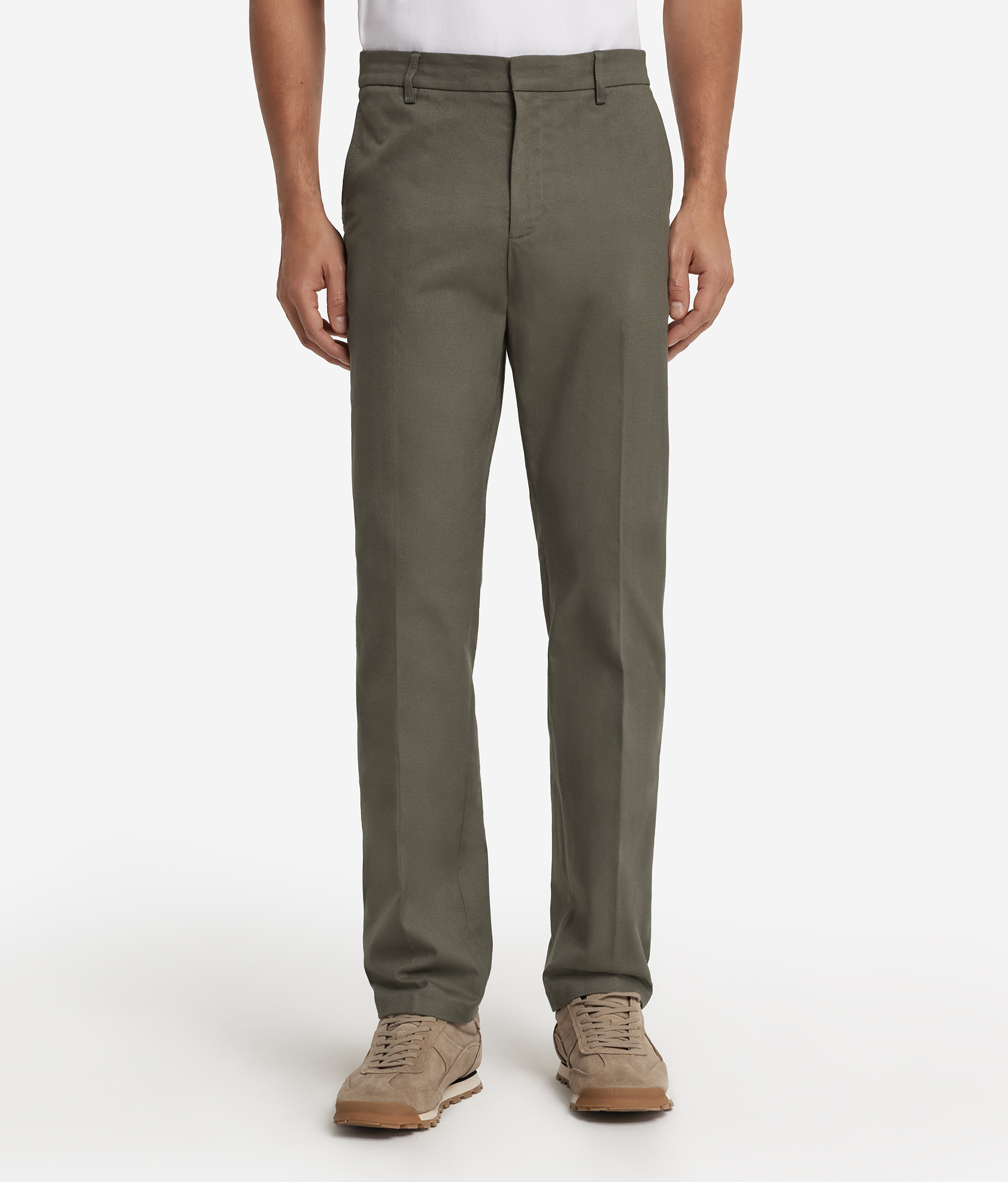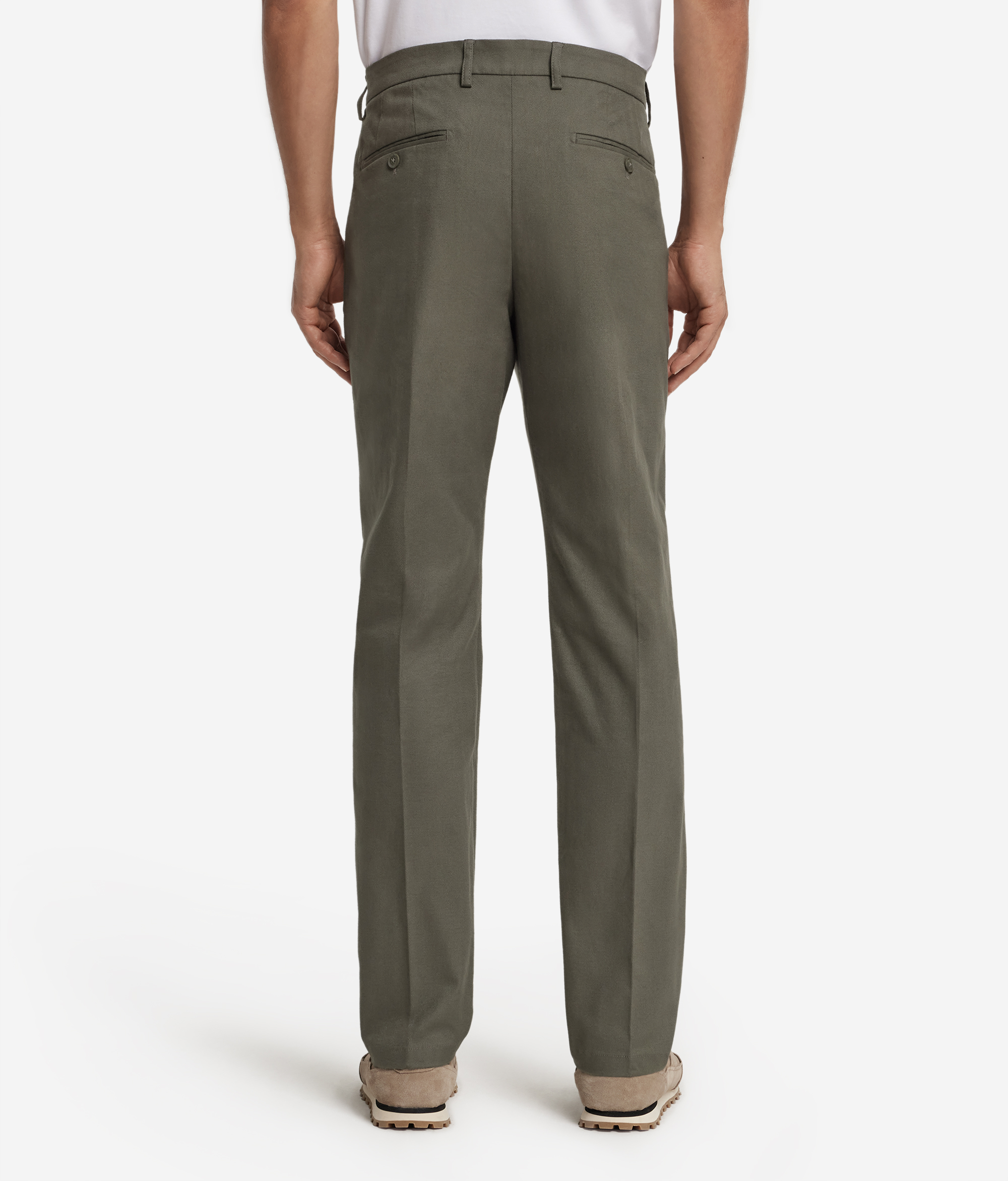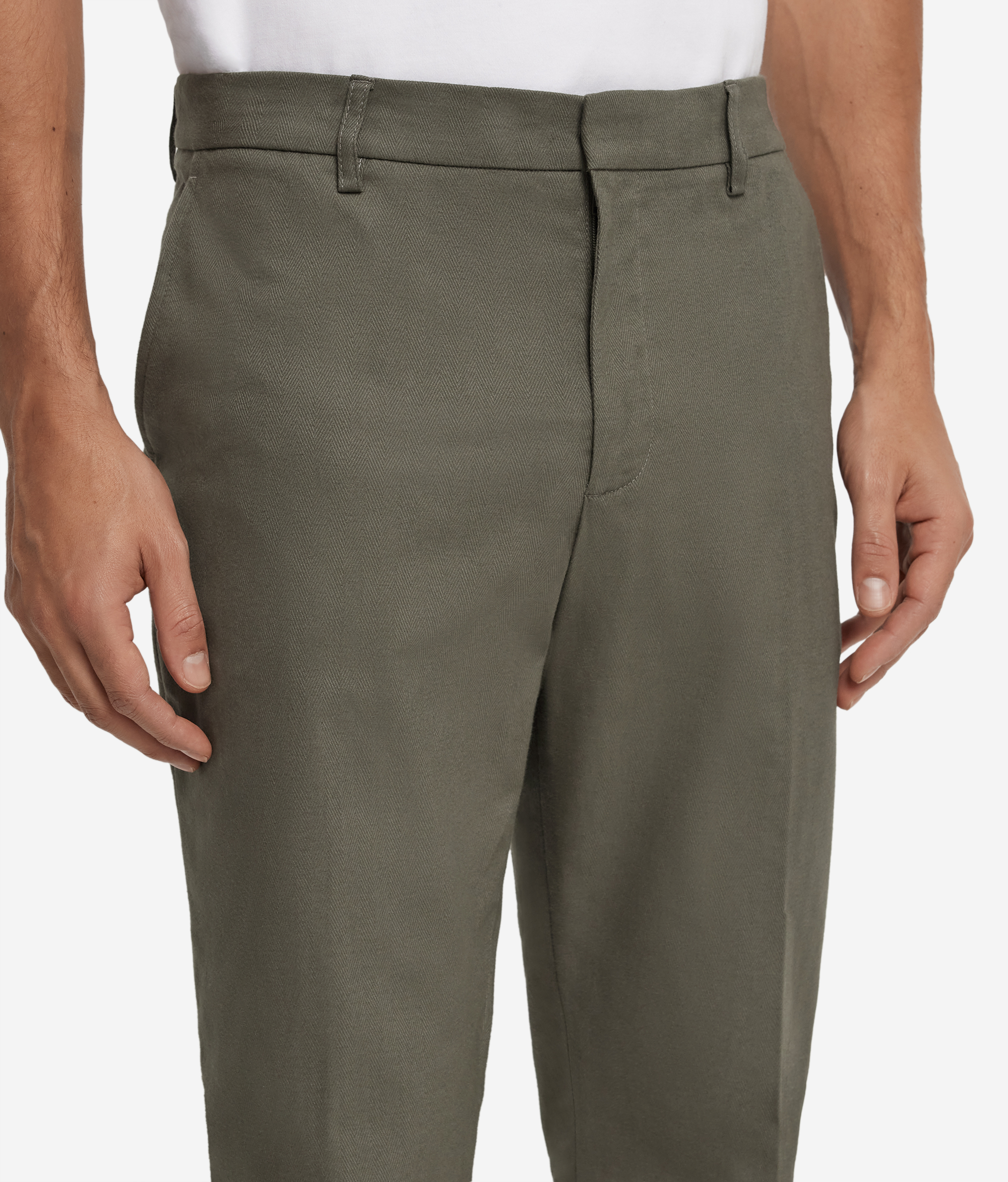Эти брюки чинос выполнены из хлопка и кашемира с узором «ёлочка», который придаёт изделию особую мягкость и фактурность. Классические элементы кроя — косые карманы, двойная ластовица на спинке с пуговицей и пояс со шлёвками — свидетельствуют о наследии традиционного пошива. Благодаря стандартному крою брюки сохраняют чистоту линий и комфортную посадку, позволяя вам выглядеть элегантно в любых обстоятельствах. Изысканная и универсальная модель, которая станет основой повседневного гардероба.