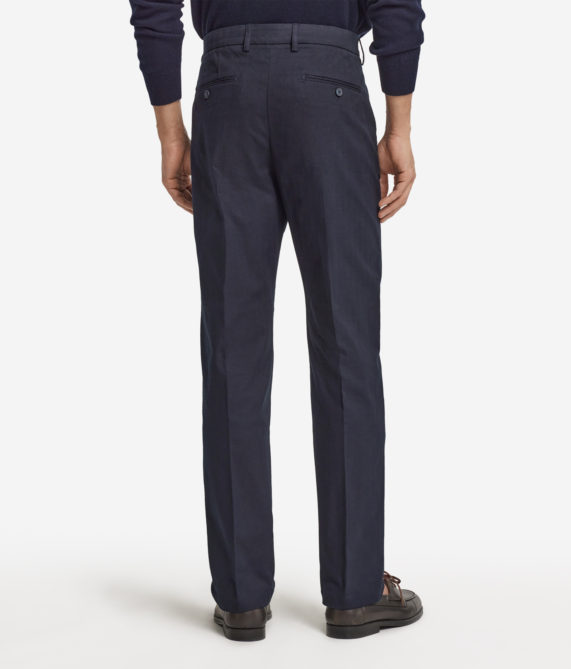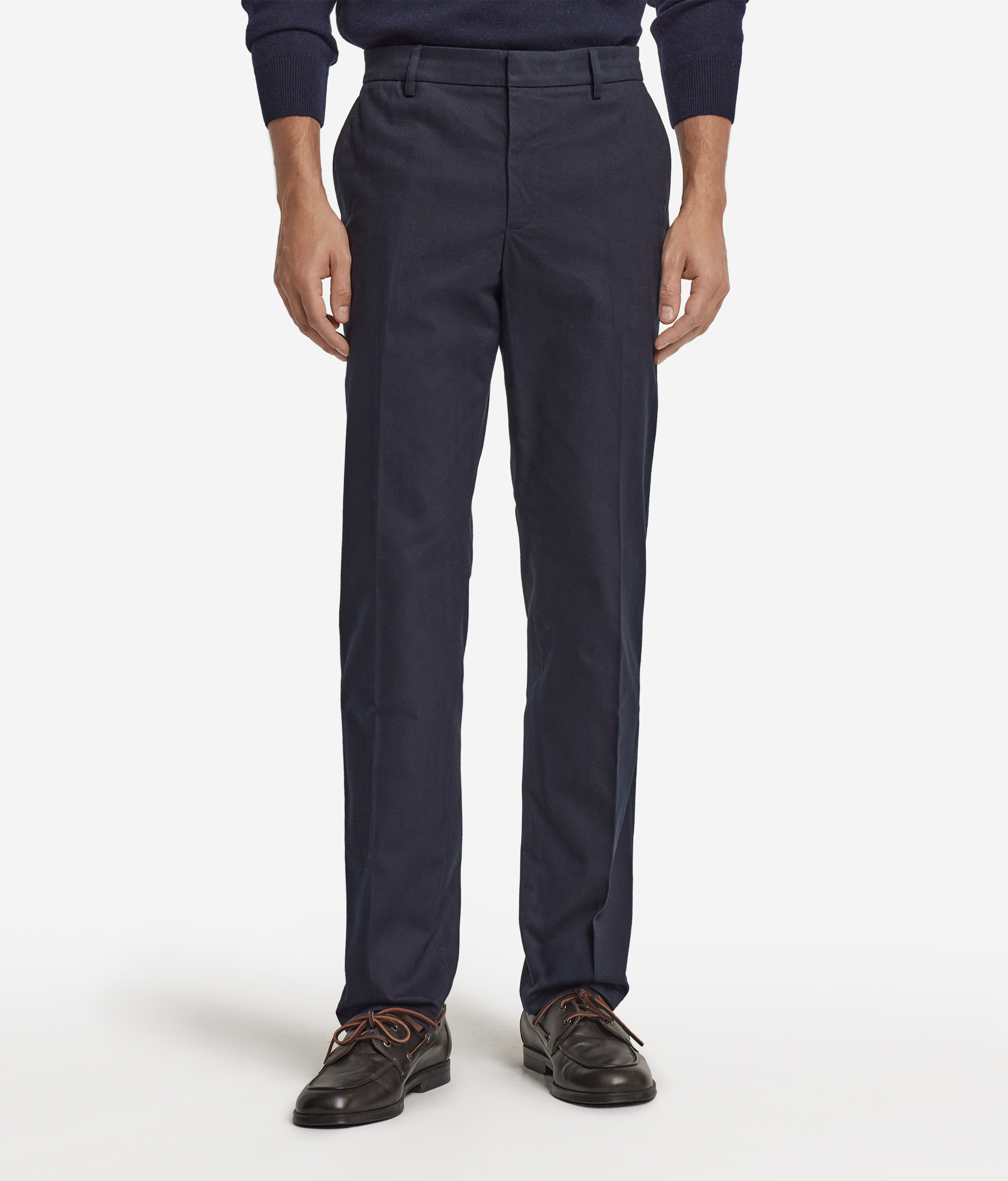Эти брюки чинос выполнены из хлопка и кашемира с узором «ёлочка», который придаёт изделию особую мягкость и фактурность. Классические элементы кроя — косые карманы, двойная ластовица на спинке с пуговицей и пояс со шлёвками — свидетельствуют о наследии традиционного пошива. Благодаря стандартному крою брюки сохраняют чистоту линий и комфортную посадку, позволяя вам выглядеть элегантно в любых обстоятельствах. Изысканная и универсальная модель, которая станет основой повседневного гардероба.
