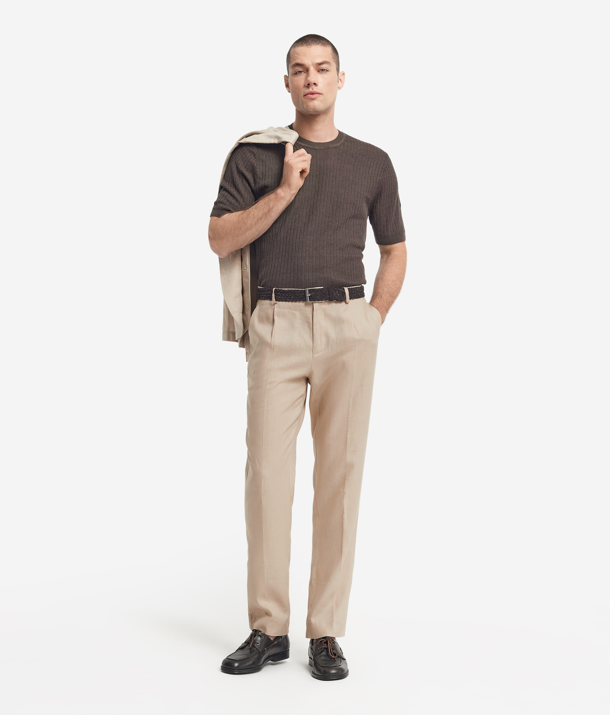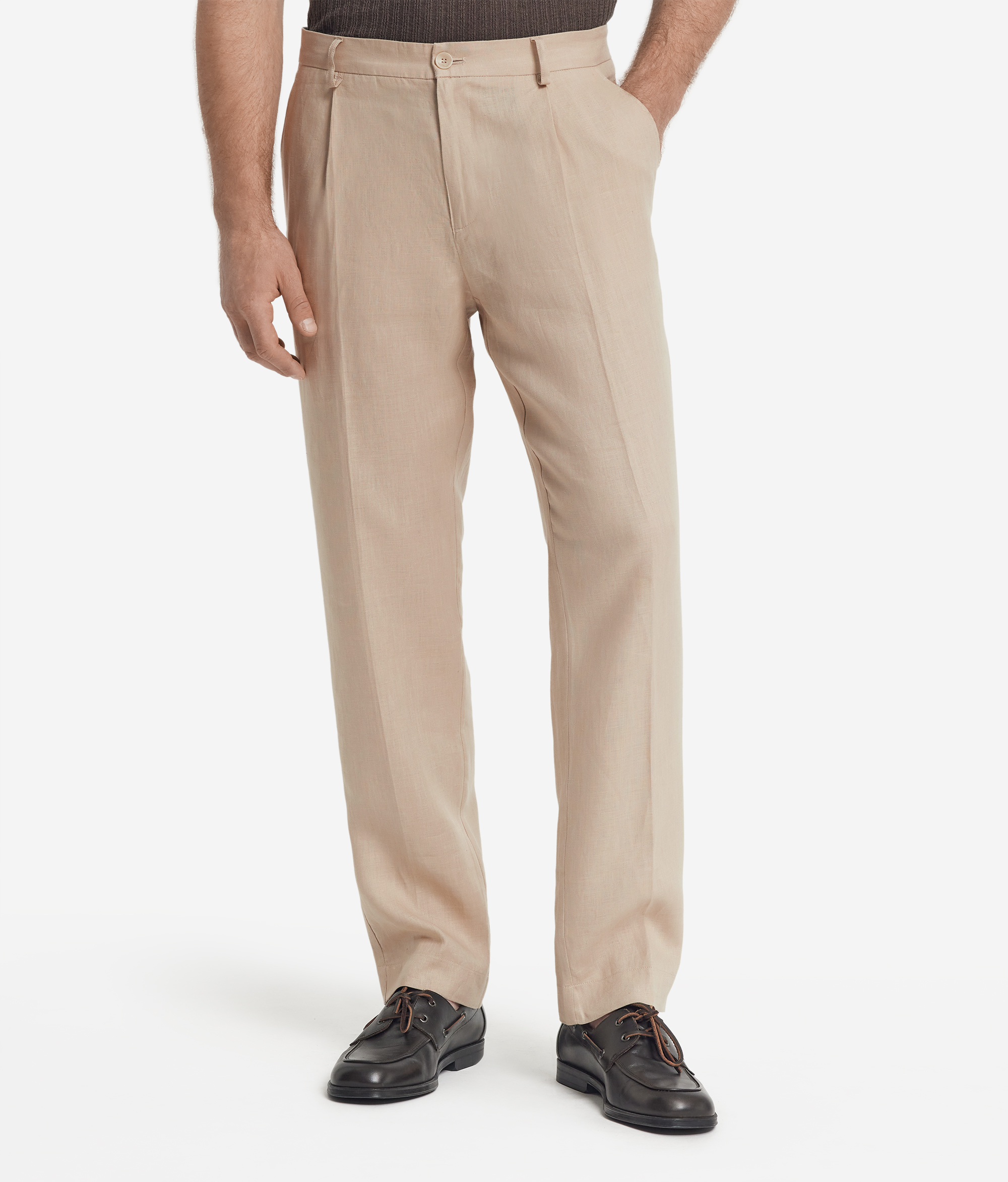 Эти льняные брюки с вытачками спереди идеально соединяют в себе классическую элегантность и черты современного стиля. Это действительно универсальная модель, которую можно носить как с простой футболкой, так и с деловым пиджаком. Лёгкая ткань в сочетании со стандартным кроем обеспечит вам комфорт и свободу движений.