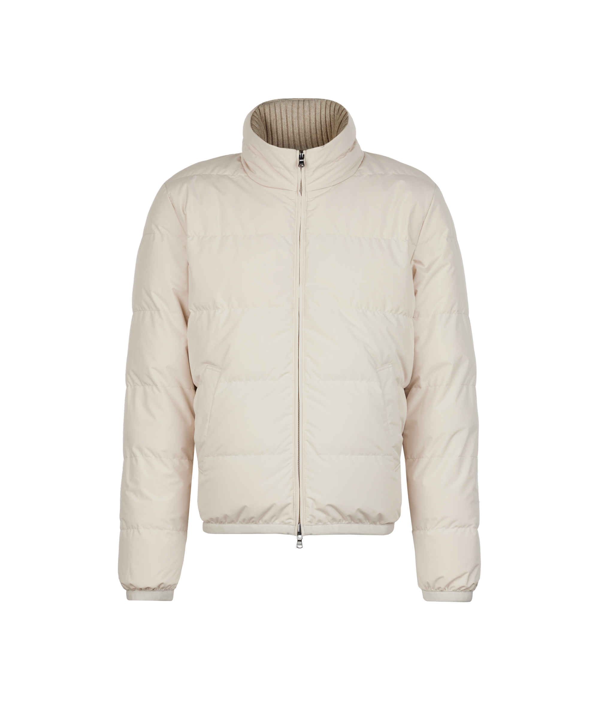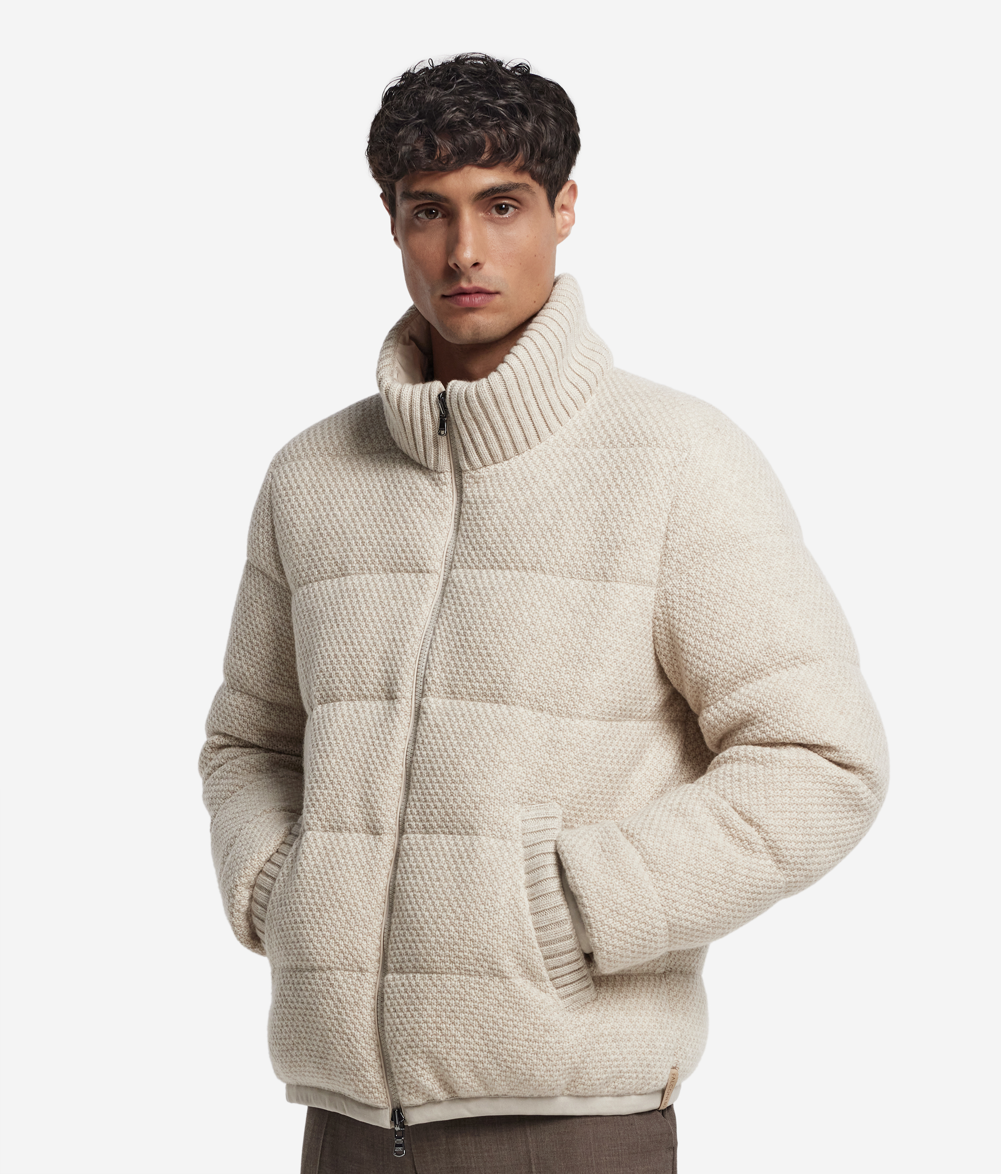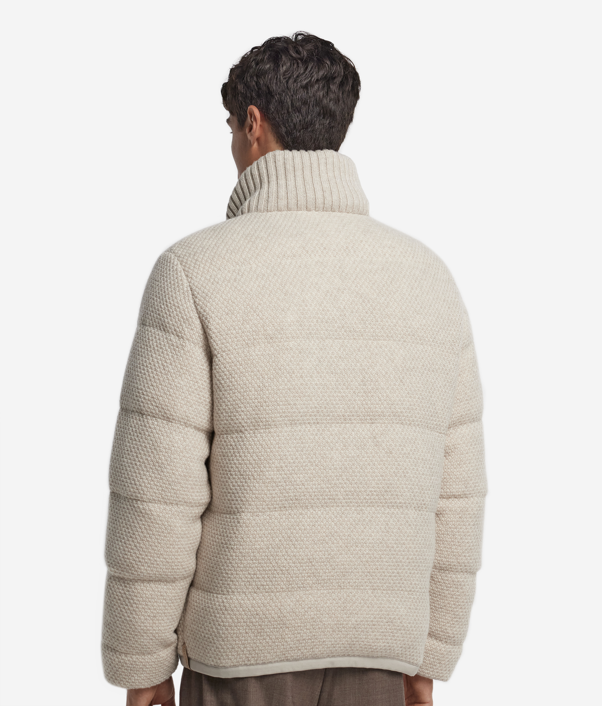 Модель, в которой благородство ткани сочетается с универсальностью современного стиля. Двусторонний пуховик из кашемира и шерсти с подкладкой из технической ткани обеспечит надёжную защиту в холодное время года. Внешняя сторона с фактурной вязкой «под плетение» позволяет экспериментировать с образами, а высокий воротник в рубчик, прорезные карманы и застёжка-молния вносят практичный и элегантный акцент. Полуприлегающий силуэт дарит комфорт и превращает модель в универсальное и стильное дополнение к зимнему гардеробу.