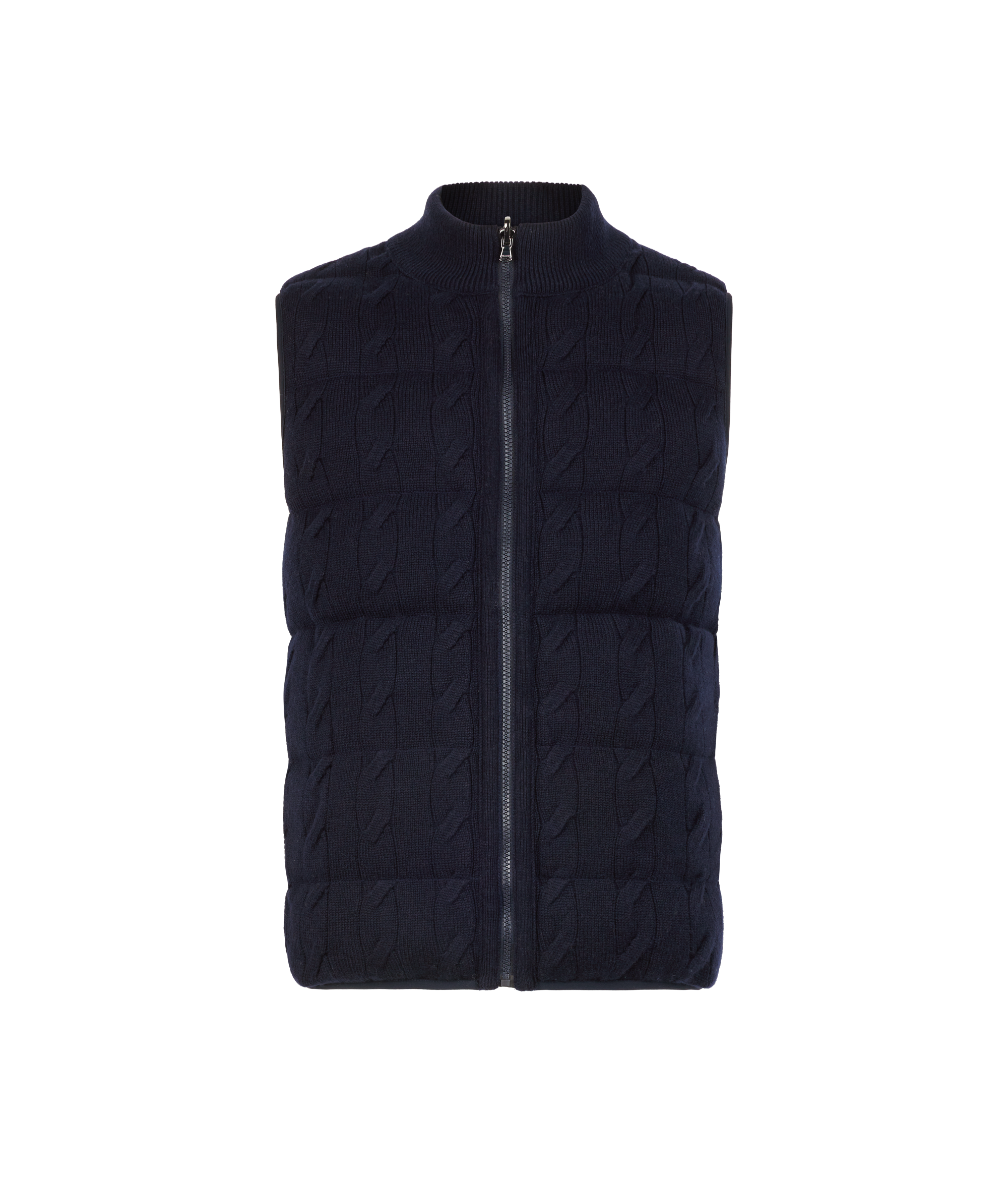 Этот изысканный и универсальный жилет из ультрамягкого кашемира с элегантной вязкой «косы» отличается особым теплом и удобством. Благодаря двустороннему дизайну с внутренней частью из технической ткани он надёжно защищает от холода, а высокий воротник в рубчик и прорезные карманы подчёркивают продуманную функциональность модели. Идеальный выбор на каждый день — для тех, кто ценит эстетику и практичность.