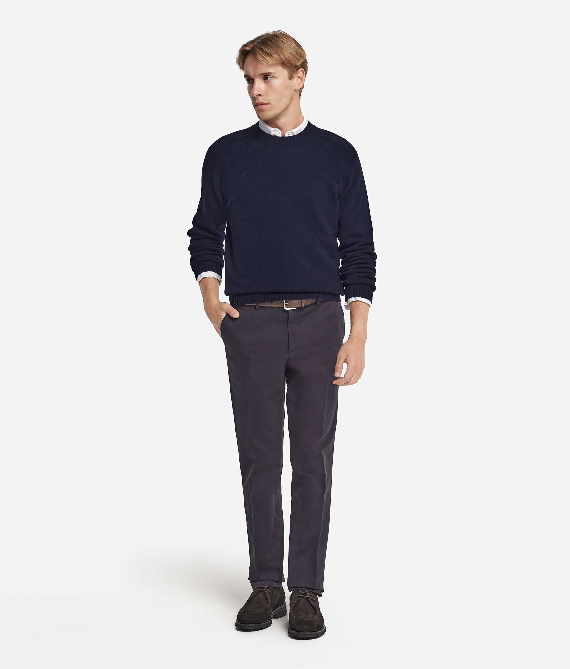 Джемпер с круглым вырезом из ультрамягкого кашемира — это неотъемлемый атрибут мужского гардероба, с которым ваши повседневные образы станут более элегантными. Модель окрашена с помощью особой техники, которая создаёт на ткани мраморные разводы в винтажном стиле.