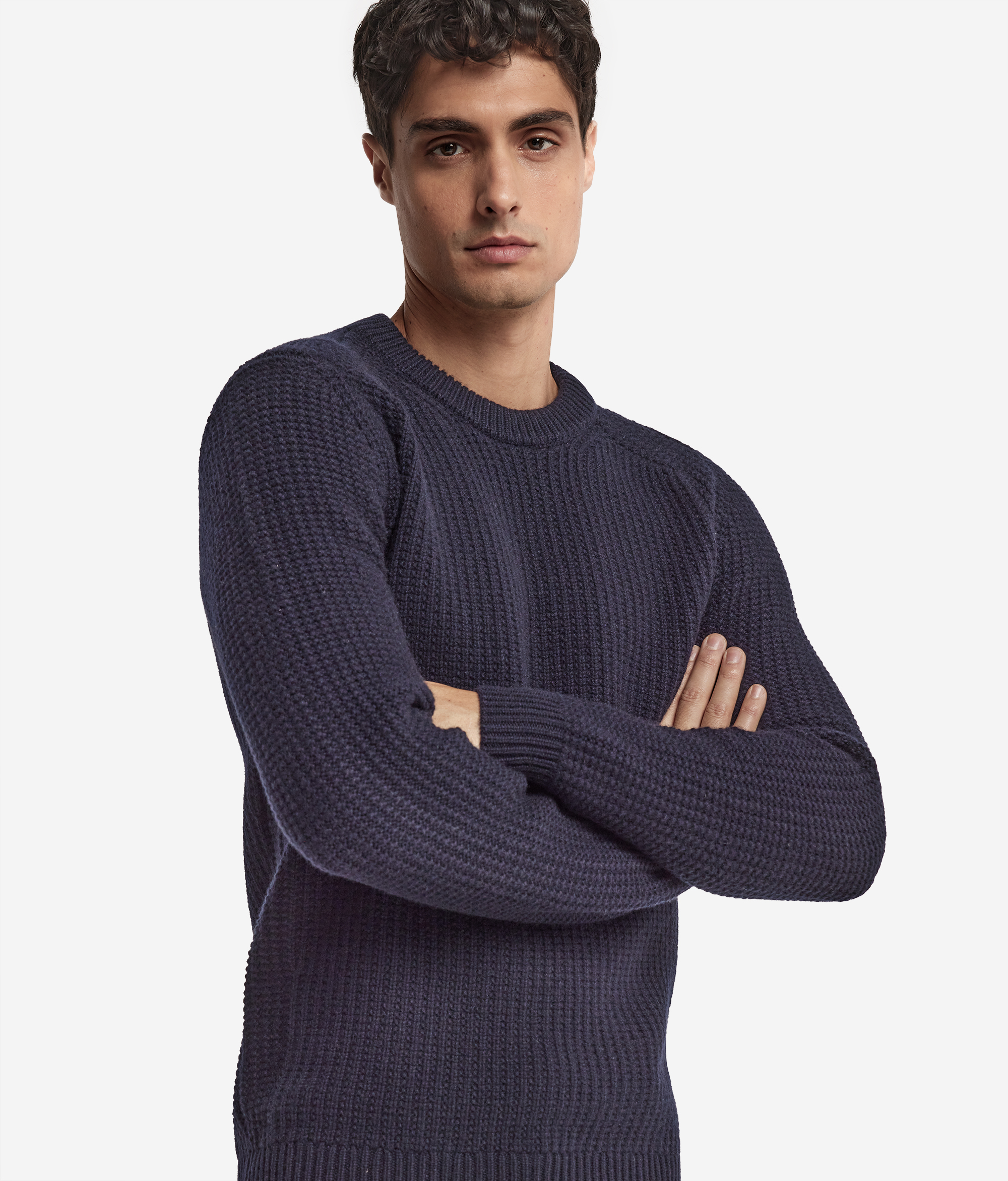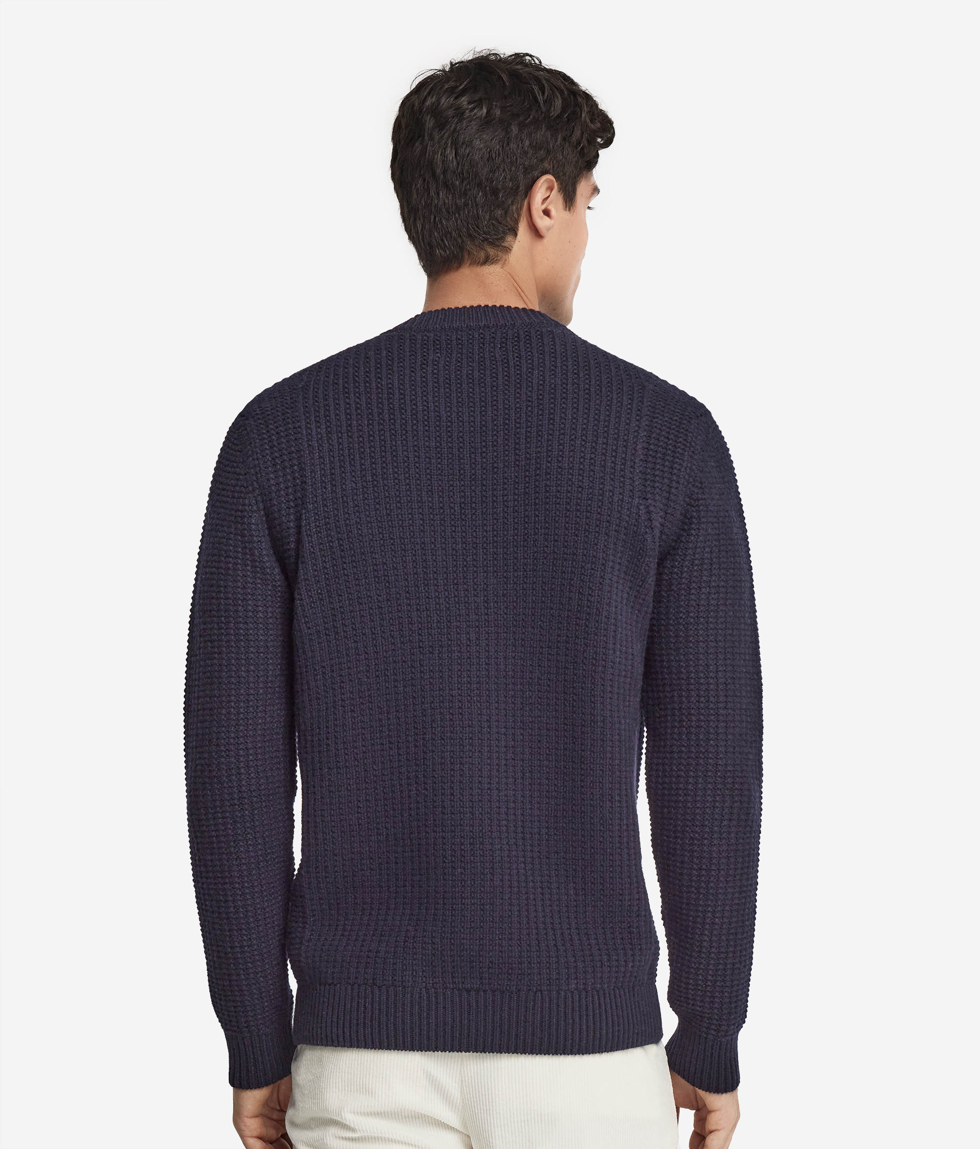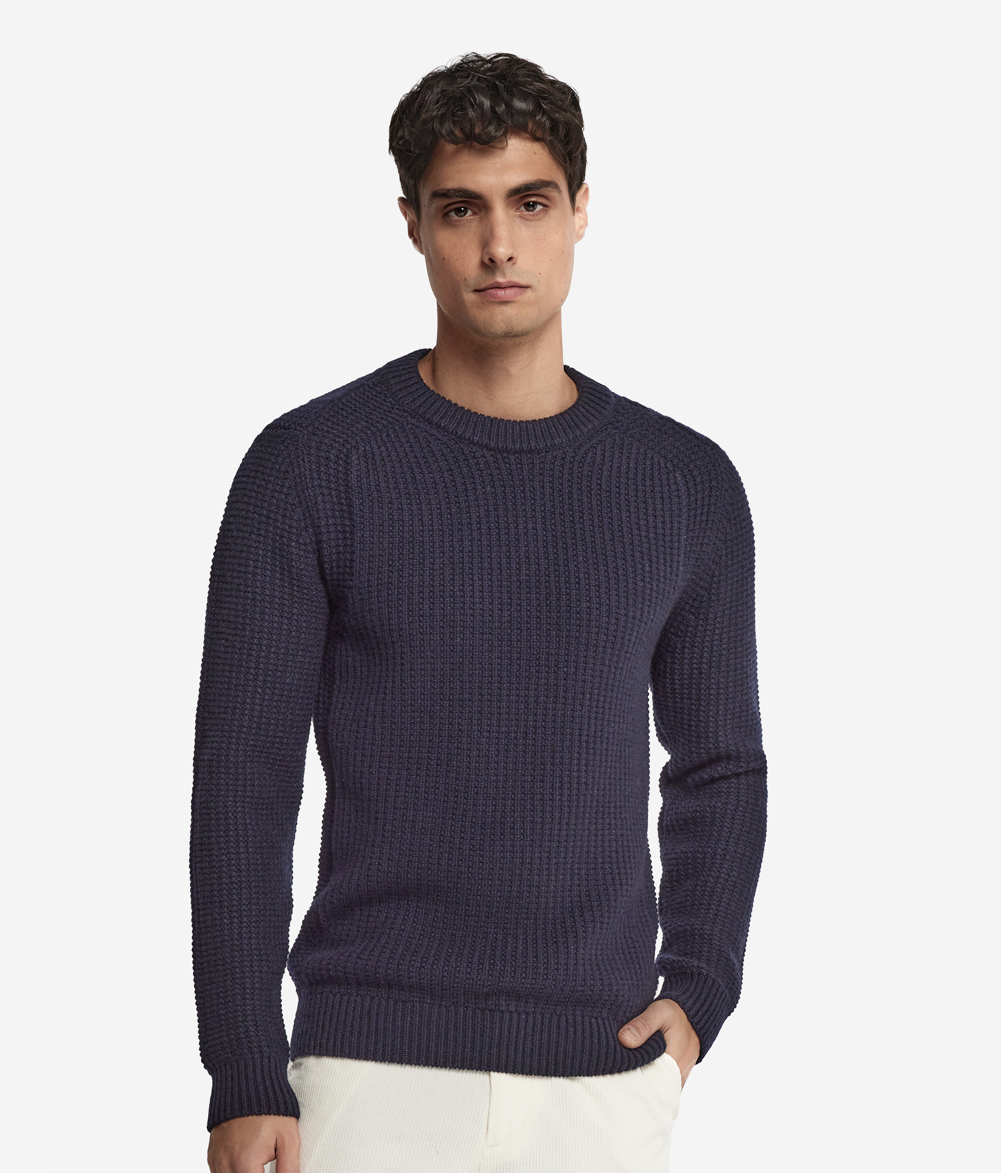 Этот джемпер с круглым вырезом горловины, изготовленный из ультрамягкого кашемира, соединяет в себе элегантность и непринуждённость. Изысканная отделка в рубчик и орнамент из узелков подчёркивают всё благородство ткани, создавая на её поверхности оригинальный трёхмерный эффект. Модель отличается продуманными деталями с выдвинутыми немного вперёд плечевыми швами, которые делают её крой ещё более современным и оригинальным.
