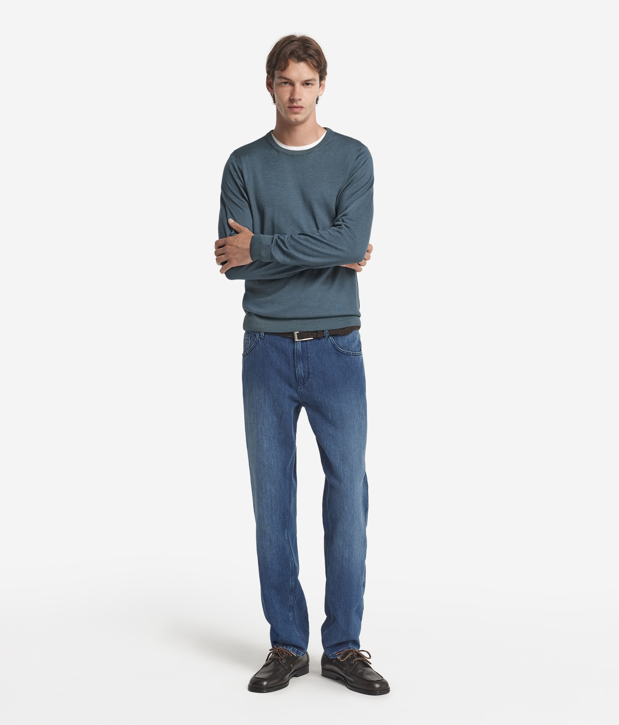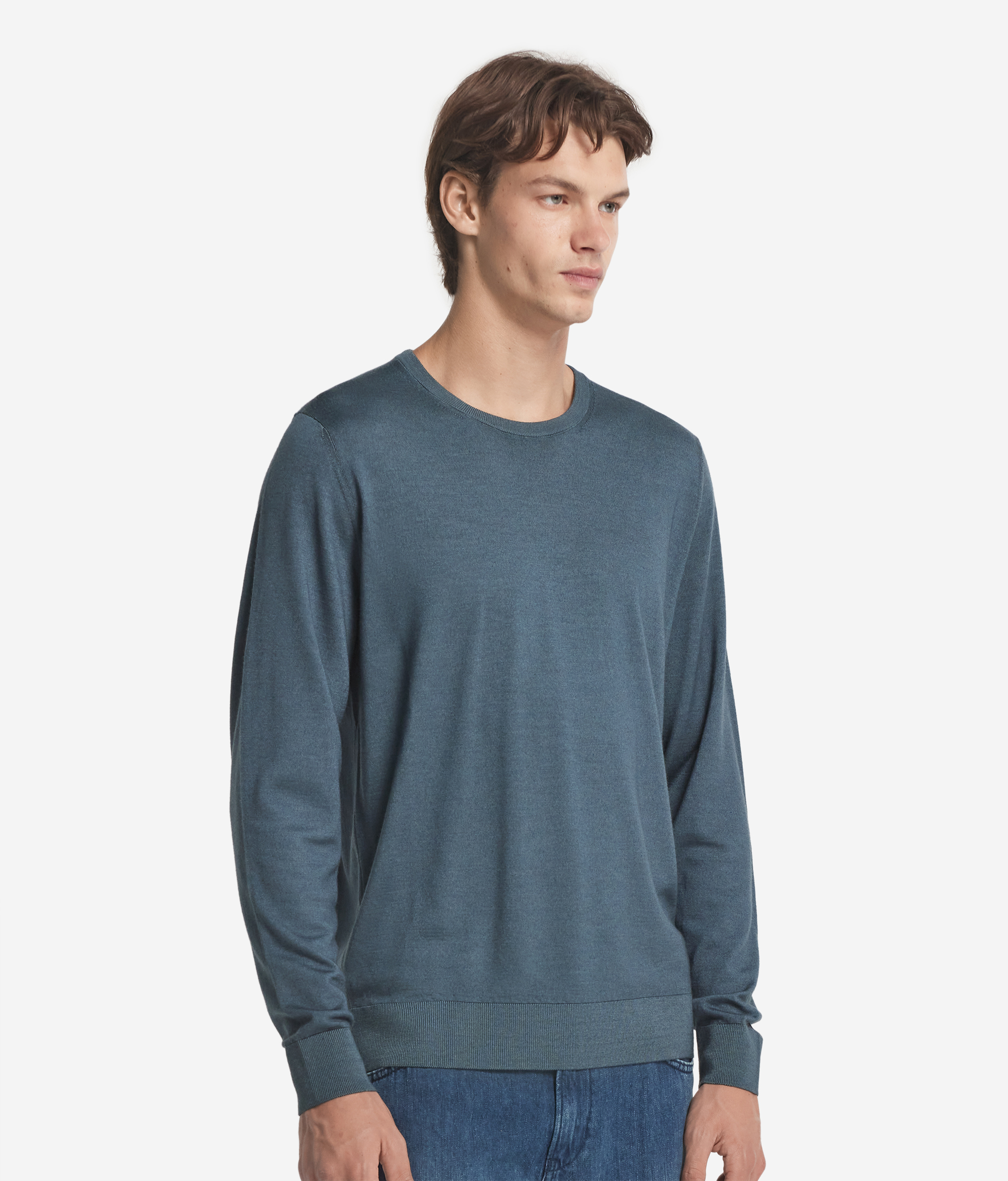 Этот джемпер с круглым вырезом горловины выполнен из натурального волокна, что придаёт ему вневременную элегантность. Мягкая и приятная на ощупь ткань обеспечивает лёгкость и комфорт, одновременно создавая обволакивающее тепло. Благодаря своей универсальности и изысканности, этот джемпер станет незаменимым элементом мужского гардероба. Его можно носить как самостоятельно, так и в сочетании с пиджаком для создания утончённого образа, подходящего для любого случая.