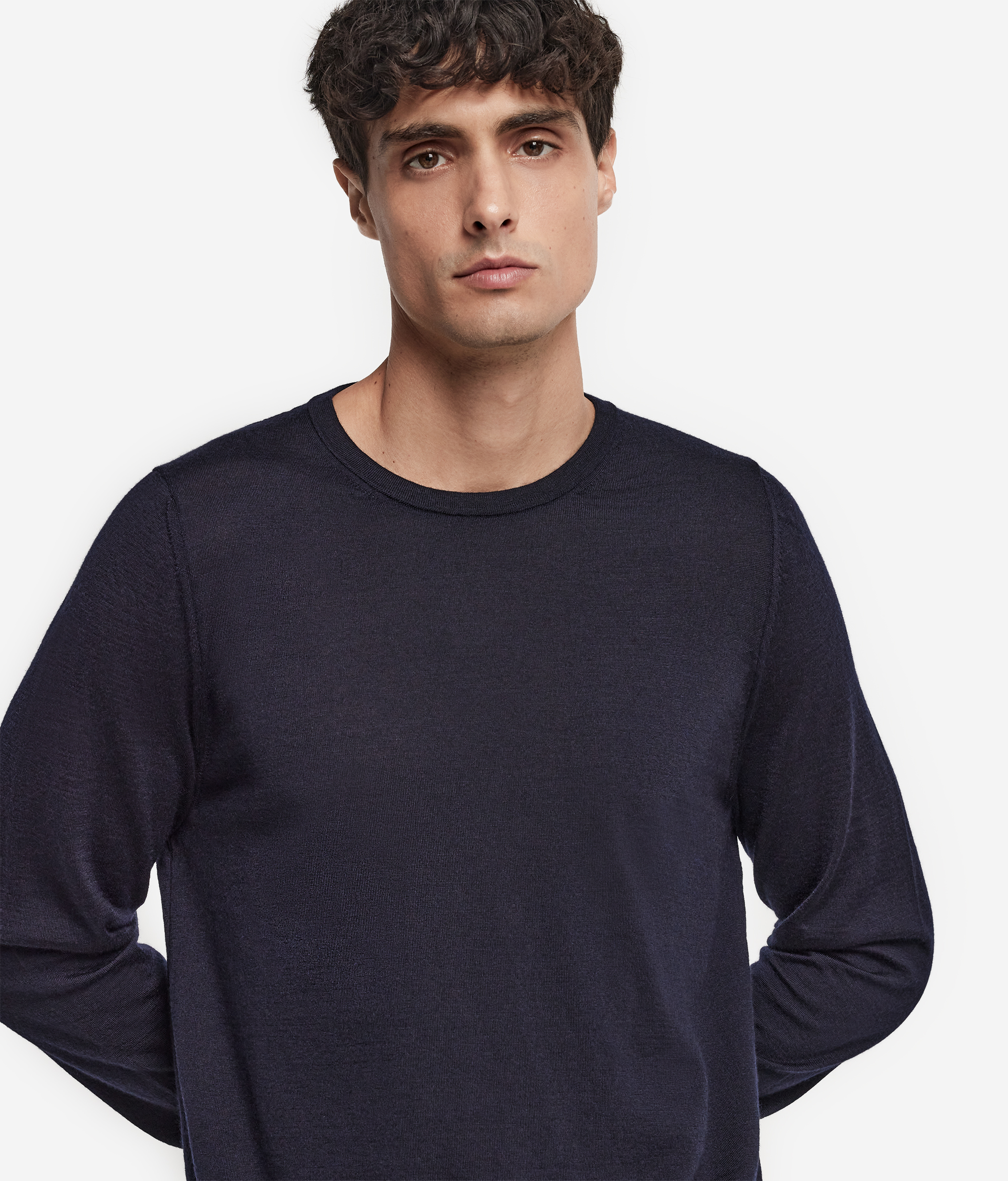Этот джемпер с круглым вырезом горловины выполнен из натурального волокна, что придаёт ему вневременную элегантность. Мягкая и приятная на ощупь ткань обеспечивает лёгкость и комфорт, одновременно создавая обволакивающее тепло. Благодаря своей универсальности и изысканности, этот джемпер станет незаменимым элементом мужского гардероба. Его можно носить как самостоятельно, так и в сочетании с пиджаком для создания утончённого образа, подходящего для любого случая.