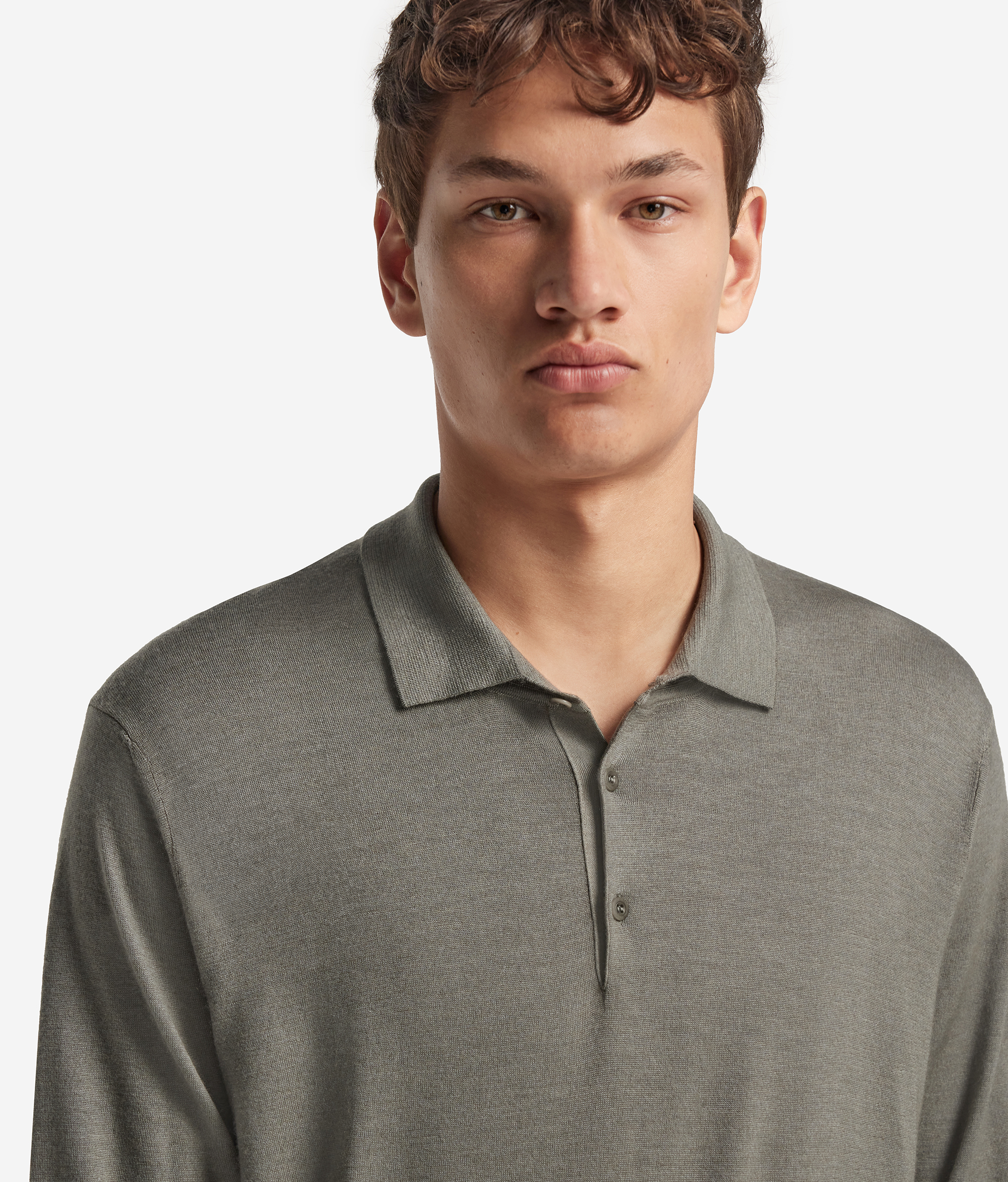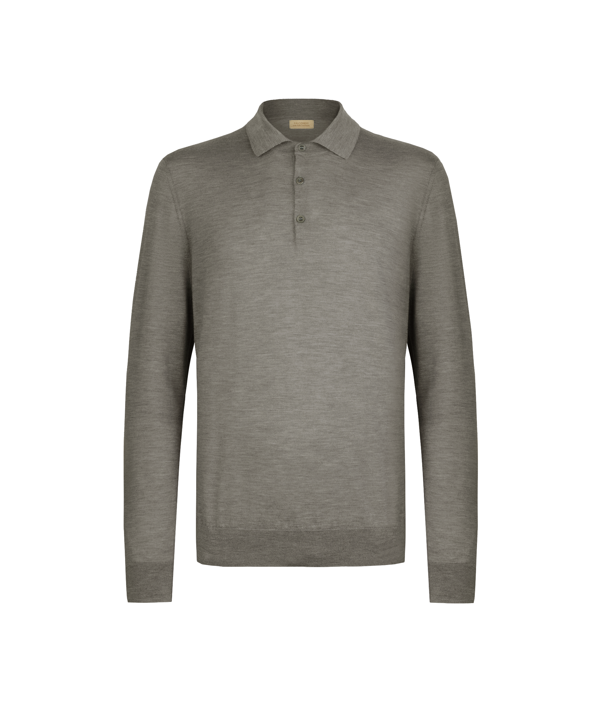 Ультратонкий кашемир, культовая пряжа бренда, подчёркивает классический стиль этого поло с длинными рукавами. Стиль изделия определяют лёгкость пряжи и внимание к деталям. Трикотажное поло можно традиционно носить с пиджаком или надевать поверх футболки, создавая более непринуждённый образ.