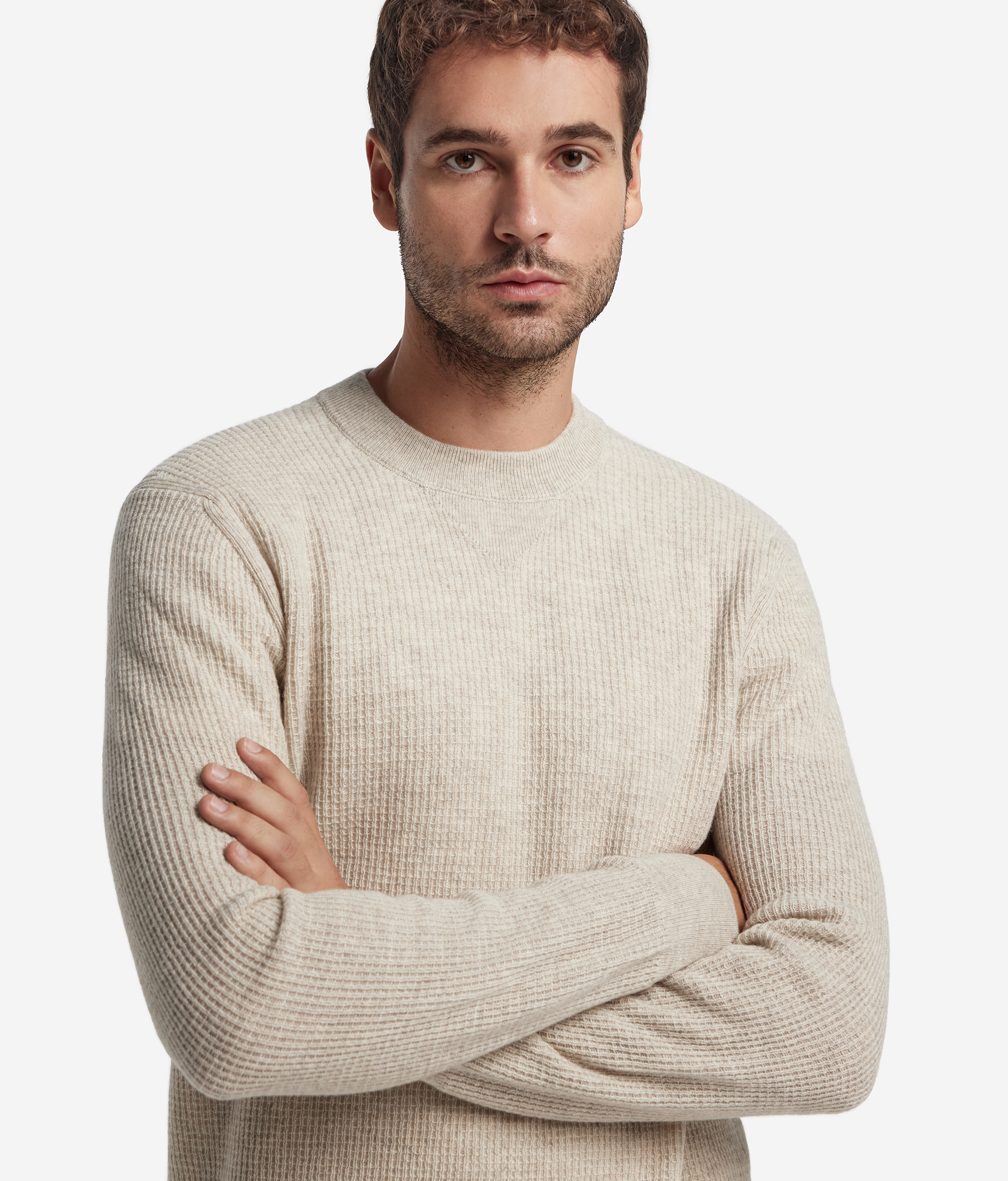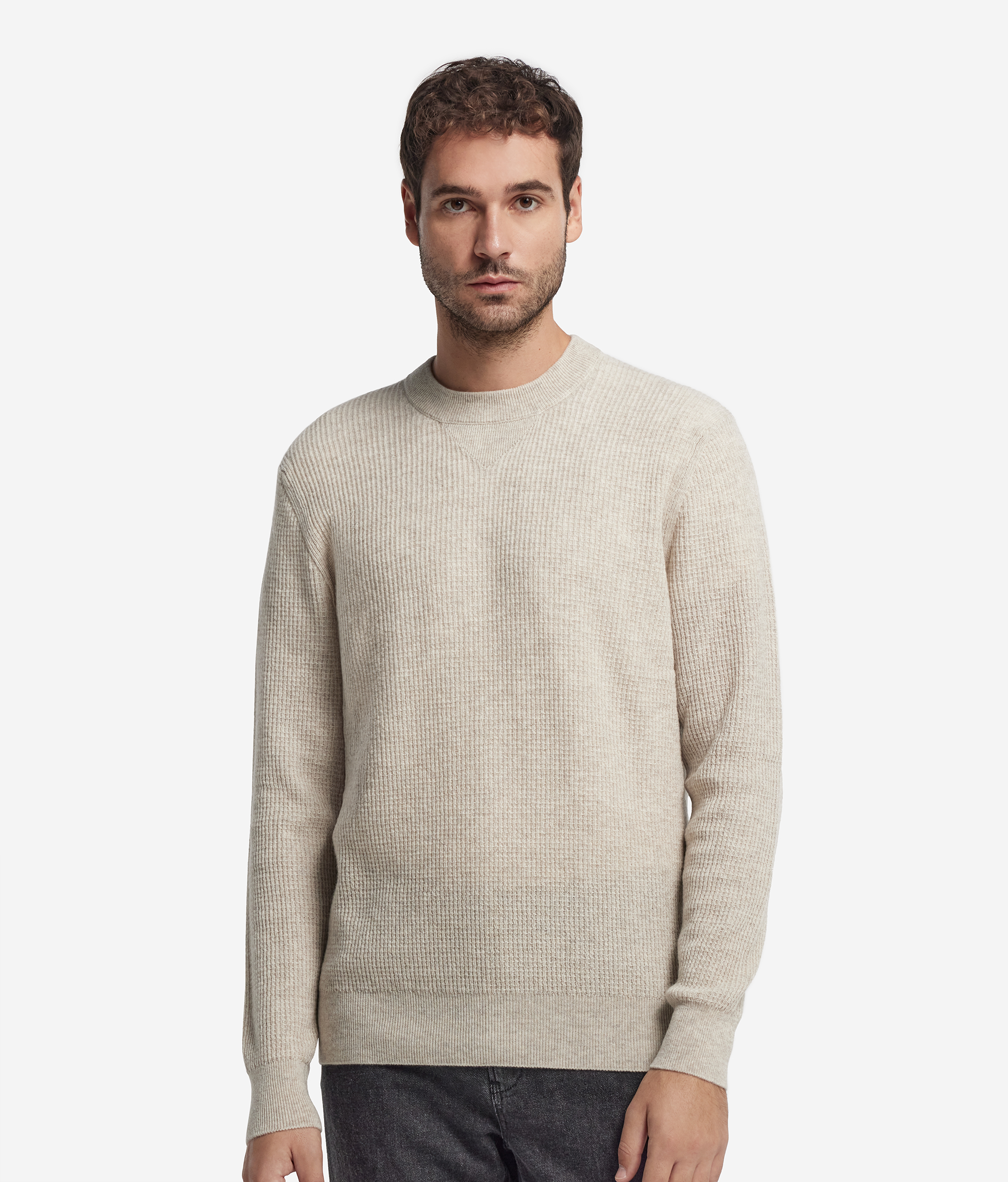Джемпер с круглым вырезом горловины вафельной вязки из ультрамягкого кашемира