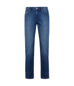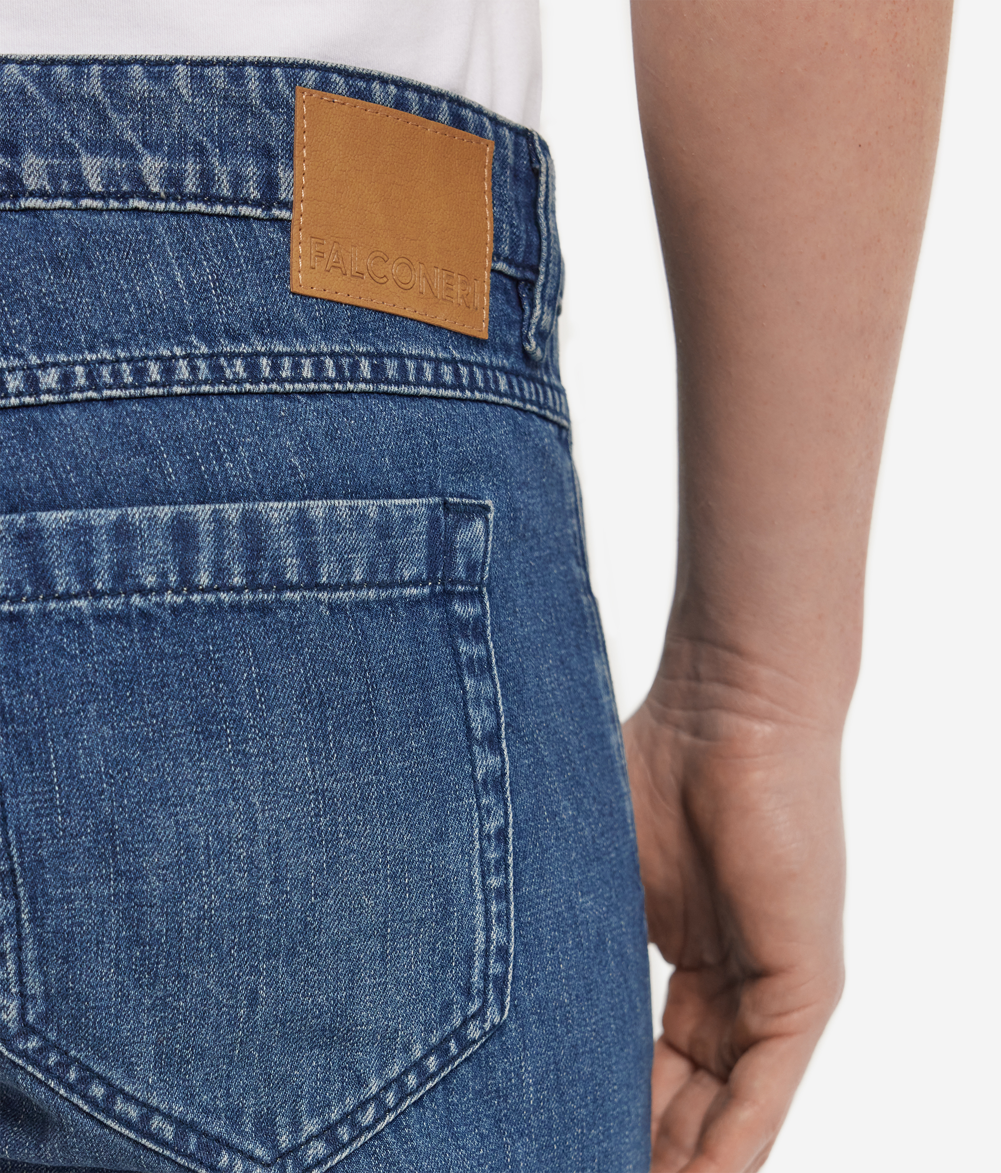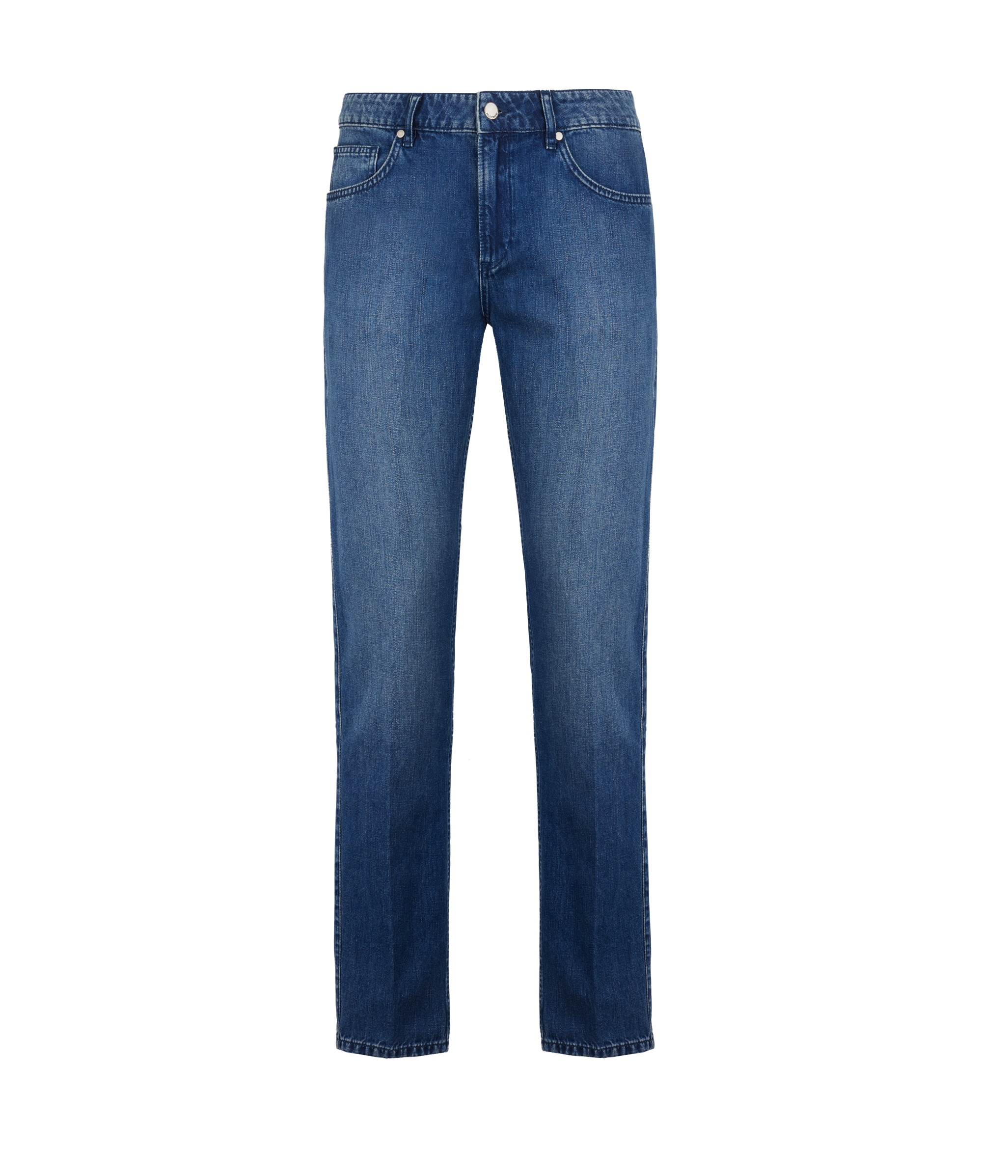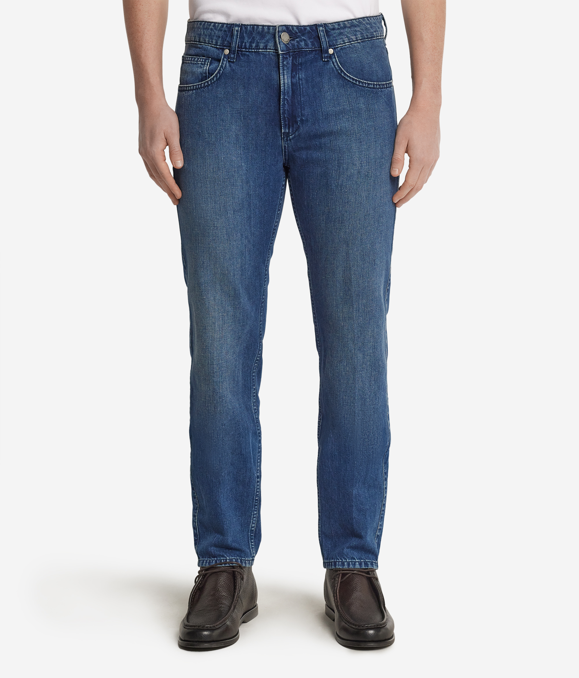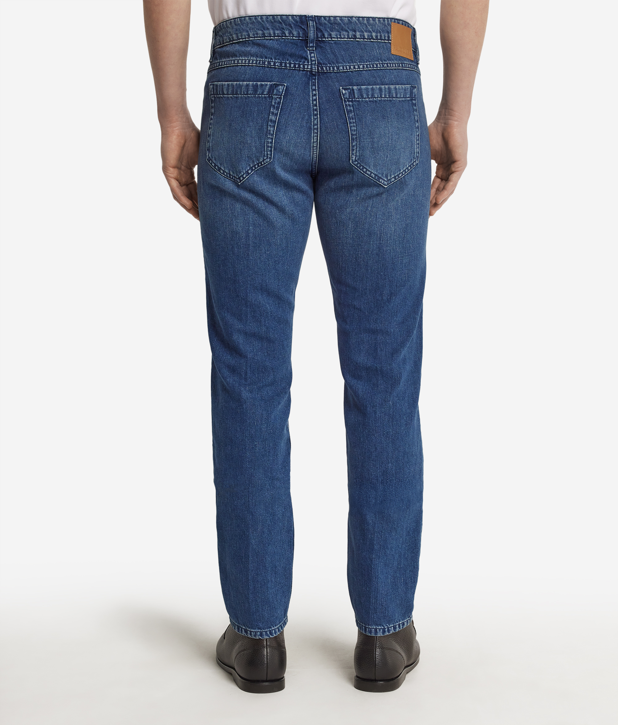 В этих джинсах из хлопка и льна повседневный стиль удачно сочетается с изысканностью деталей. Пояс, украшенный вышивкой с внутренней стороны, дополняют внутренние карманы из фирменной ткани. Стандартный крой, придающий стройность силуэту, делает эти универсальные джинсы незаменимым элементом повседневного гардероба.