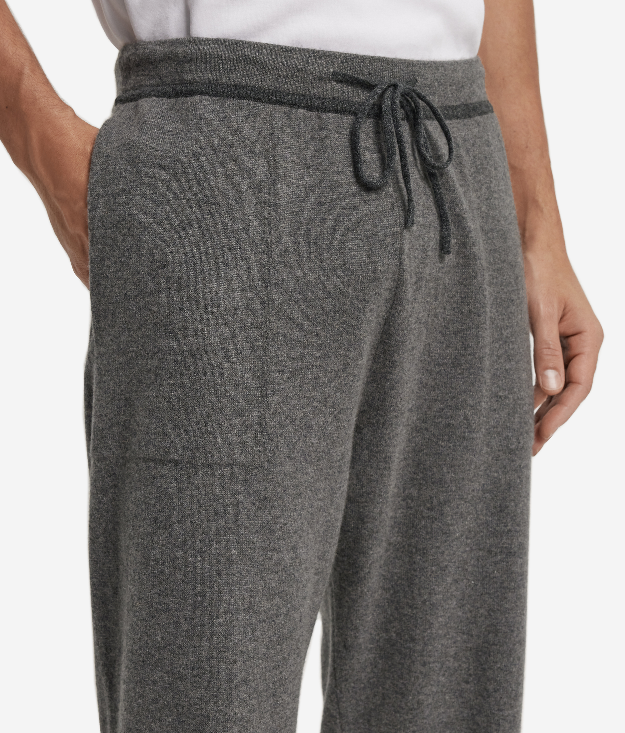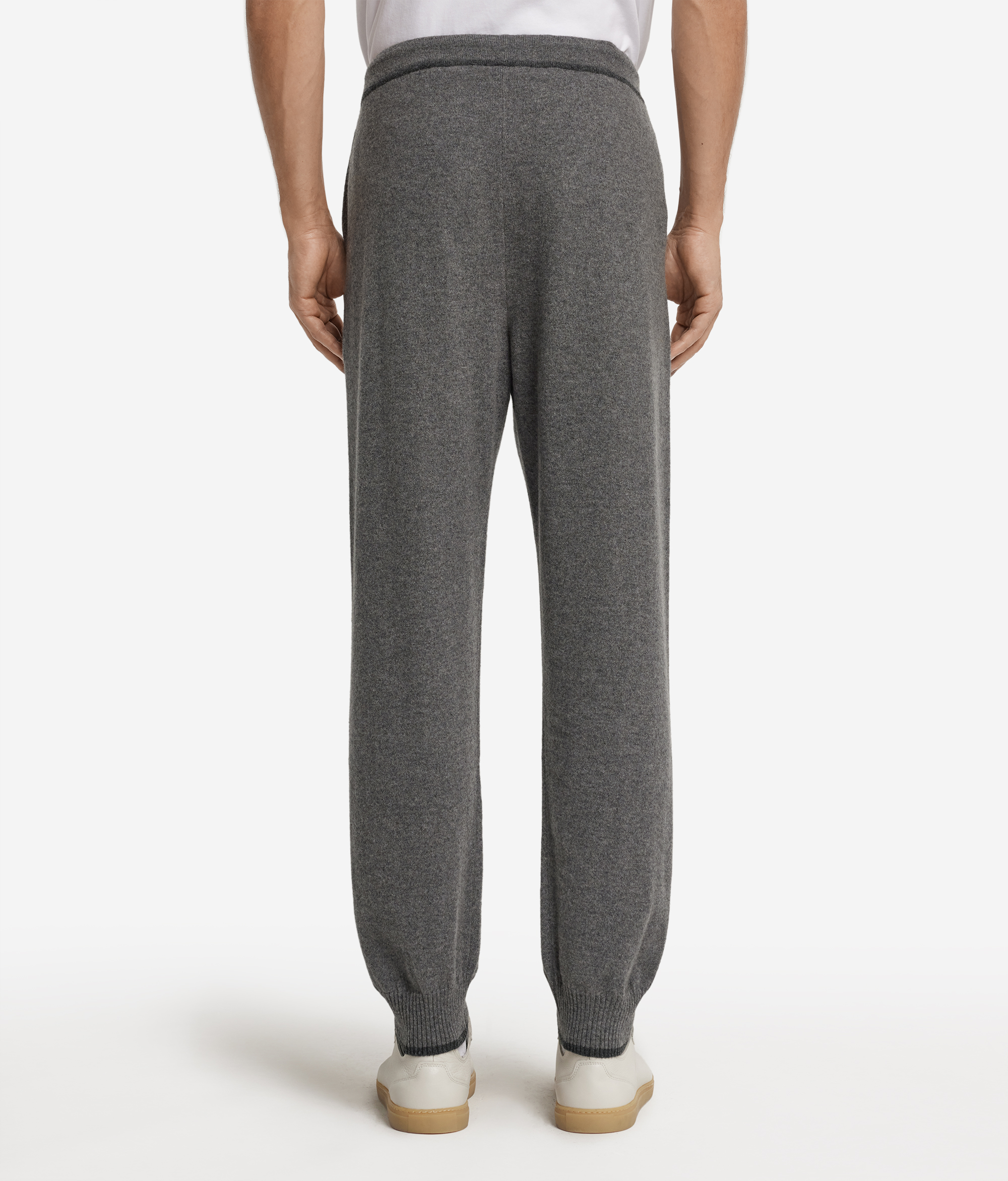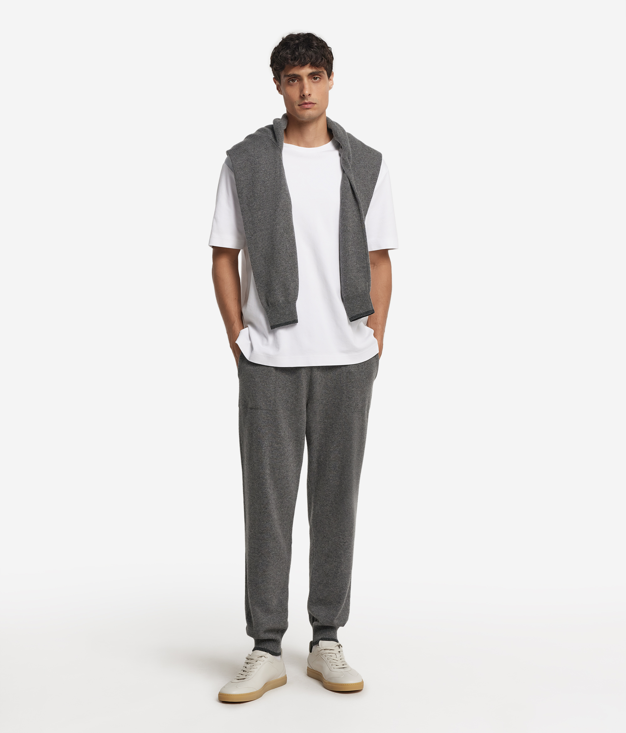 Излюбленный брендом ультрамягкий кашемир подчёркивает одновременно непринуждённый и изысканный характер этих комфортных спортивных брюк, которые были созданы специально для расслабленных образов.