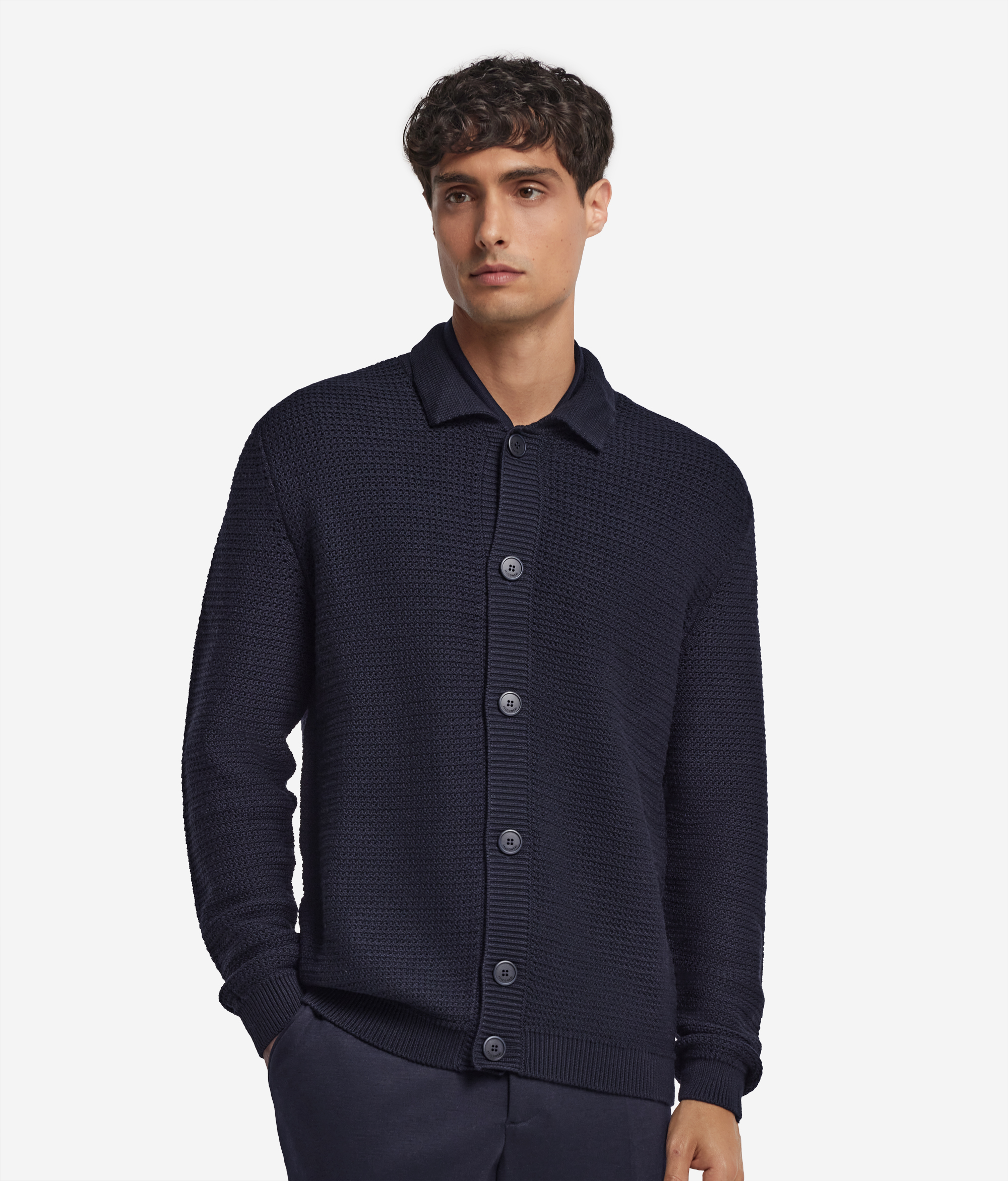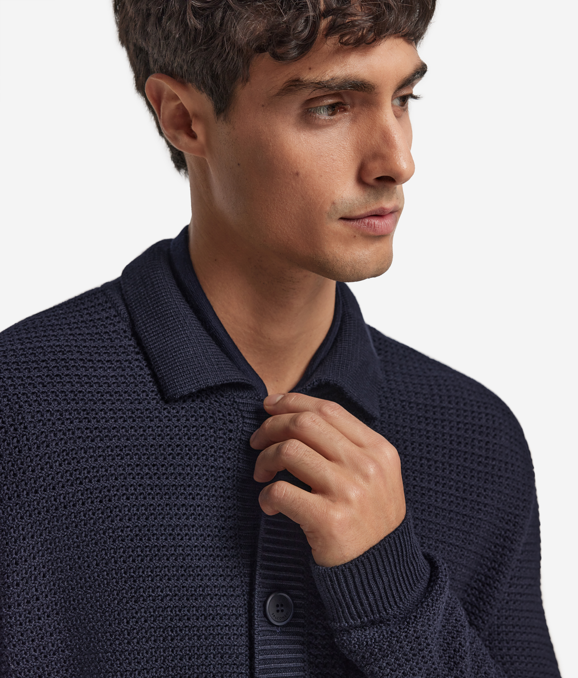 Эта куртка-рубашка из шерсти выделяется своим лаконичным силуэтом и выразительной фактурой. Отточенные элементы конструкции — воротник и однобортная пуговичная застёжка — подчеркивают строгую геометрию и утончённость линий. Благодаря универсальному характеру эту модель можно носить как рубашку или как лёгкую верхнюю вещь. Идеальное решение для многослойных образов в духе минималистичной роскоши.