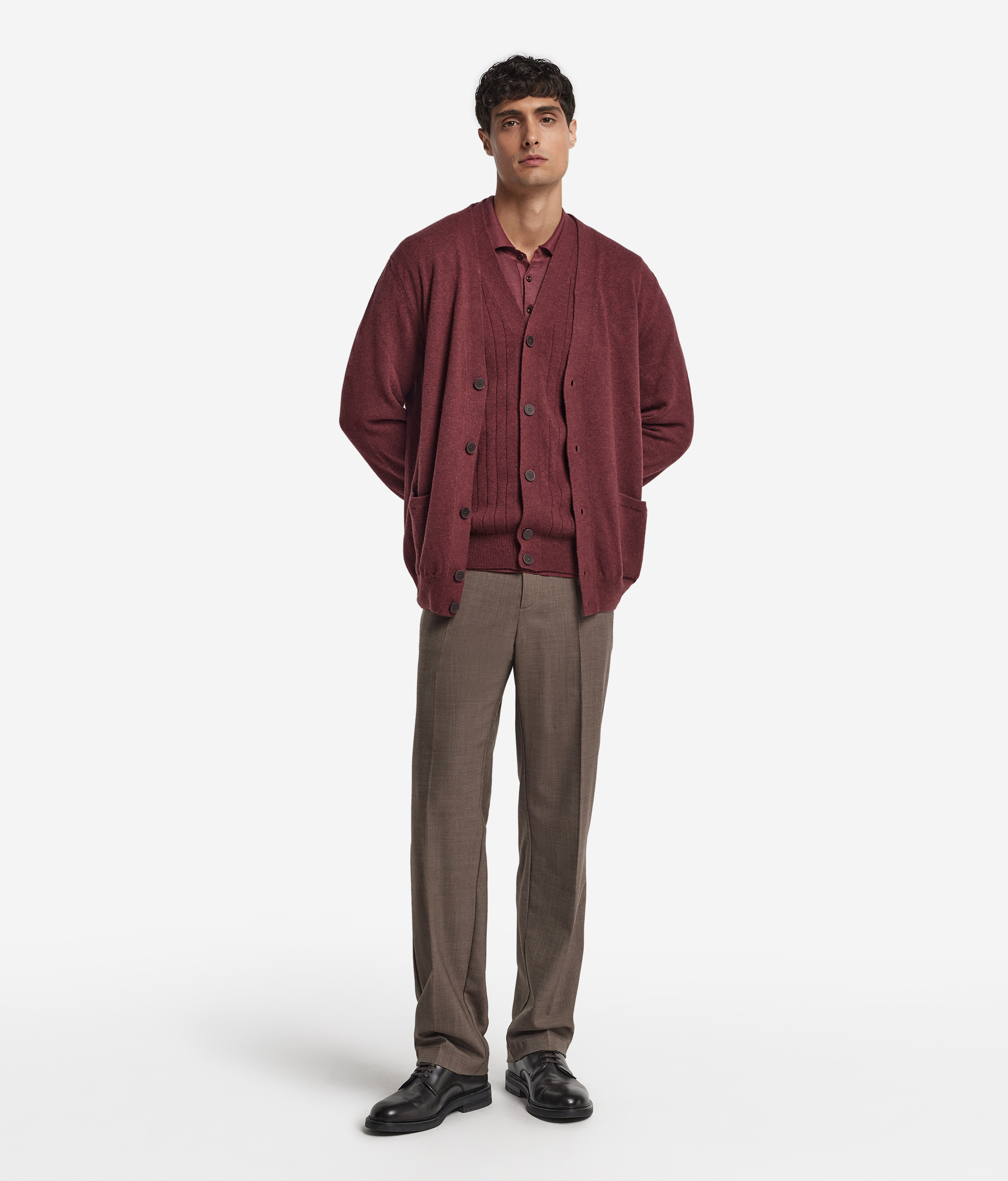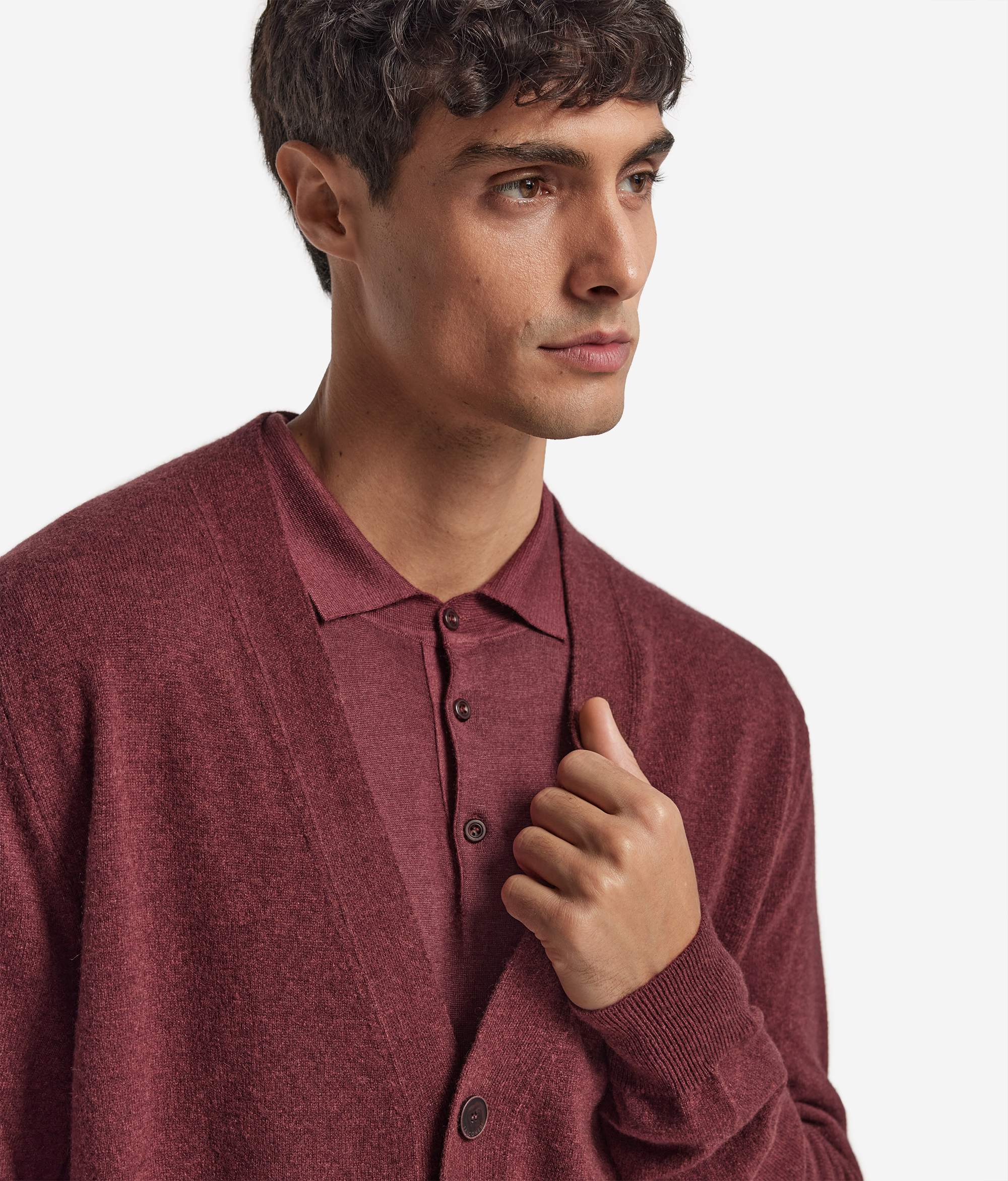 Этот уютный и изысканный кардиган из благородного ультрамягкого кашемира связан лицевой гладью, подчёркивающей нежную и однородную текстуру изделия. Классический силуэт дополнен V-образным вырезом горловины и центральной застёжкой на пуговицы, которые придают модели элегантную сдержанность и универсальность. Полуприлегающий крой обеспечивает комфортную посадку и свободу движений, а накладные карманы вносят в образ практичный и непринуждённый акцент.