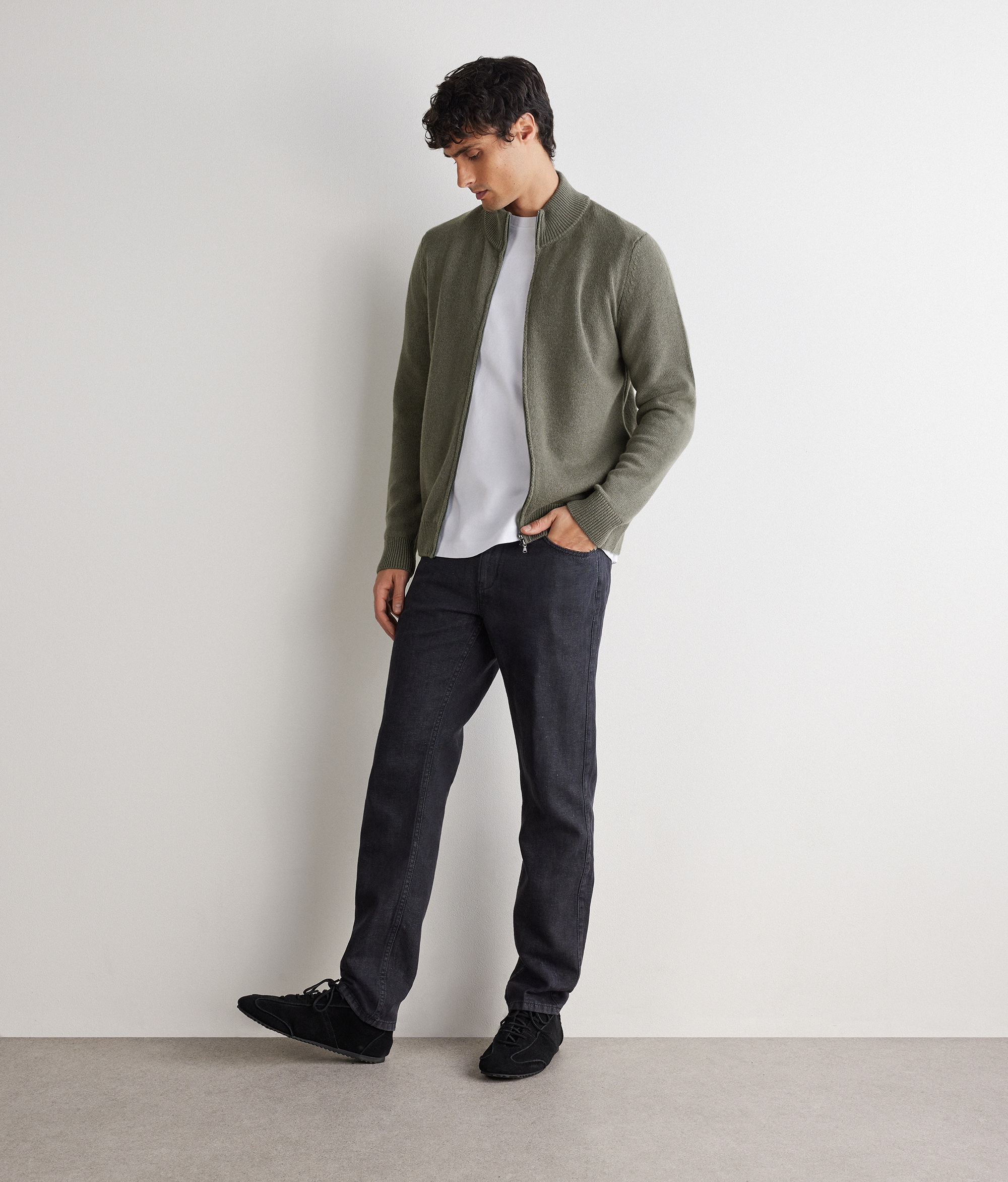 Этот кардиган из ультрамягкого кашемира окутывает ощущением комфорта и воплощает утончённую, сдержанную элегантность. Центральная застёжка-молния подчёркивает его практичный и современный характер, а классический крой придаёт силуэту сбалансированность и универсальность.