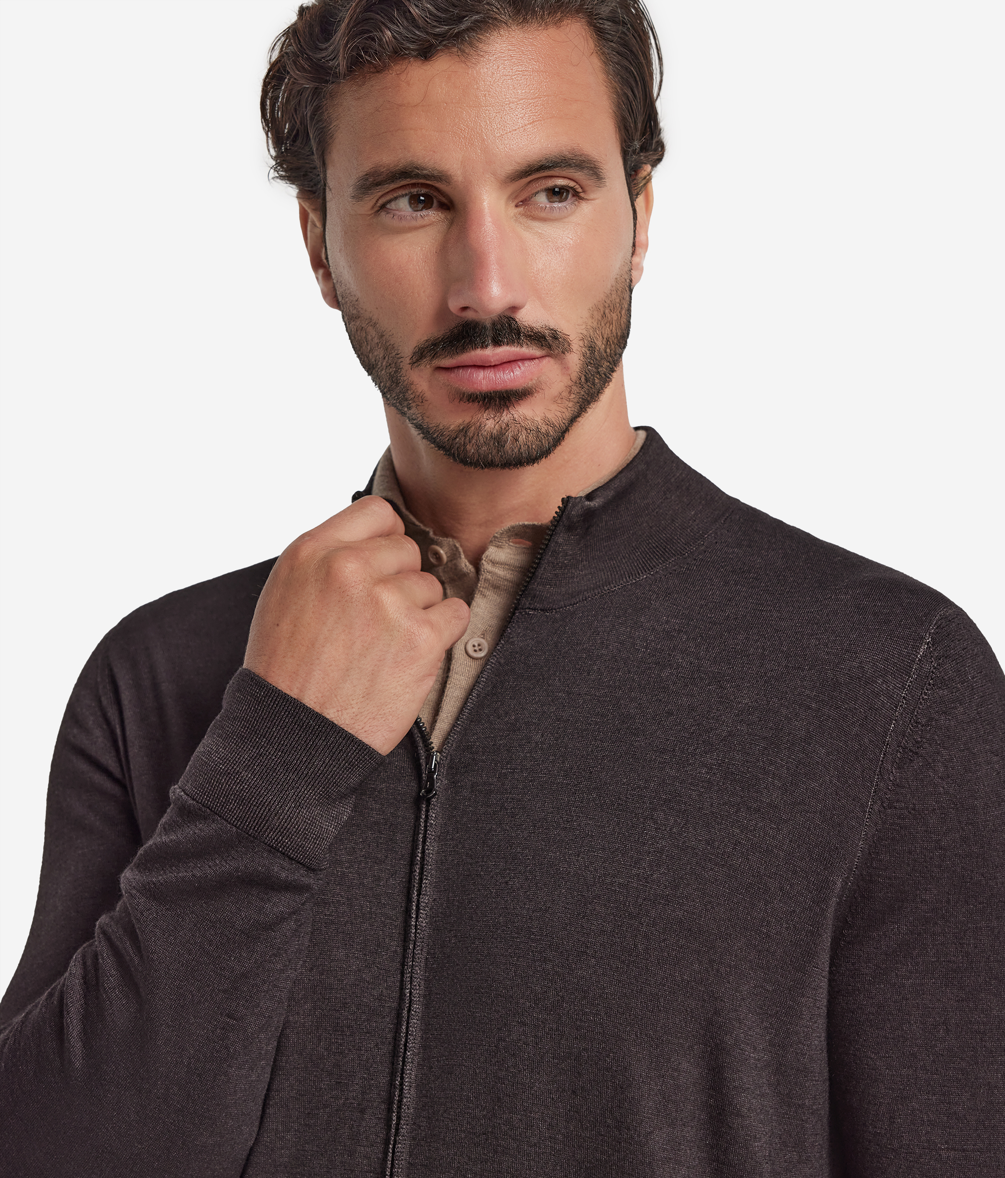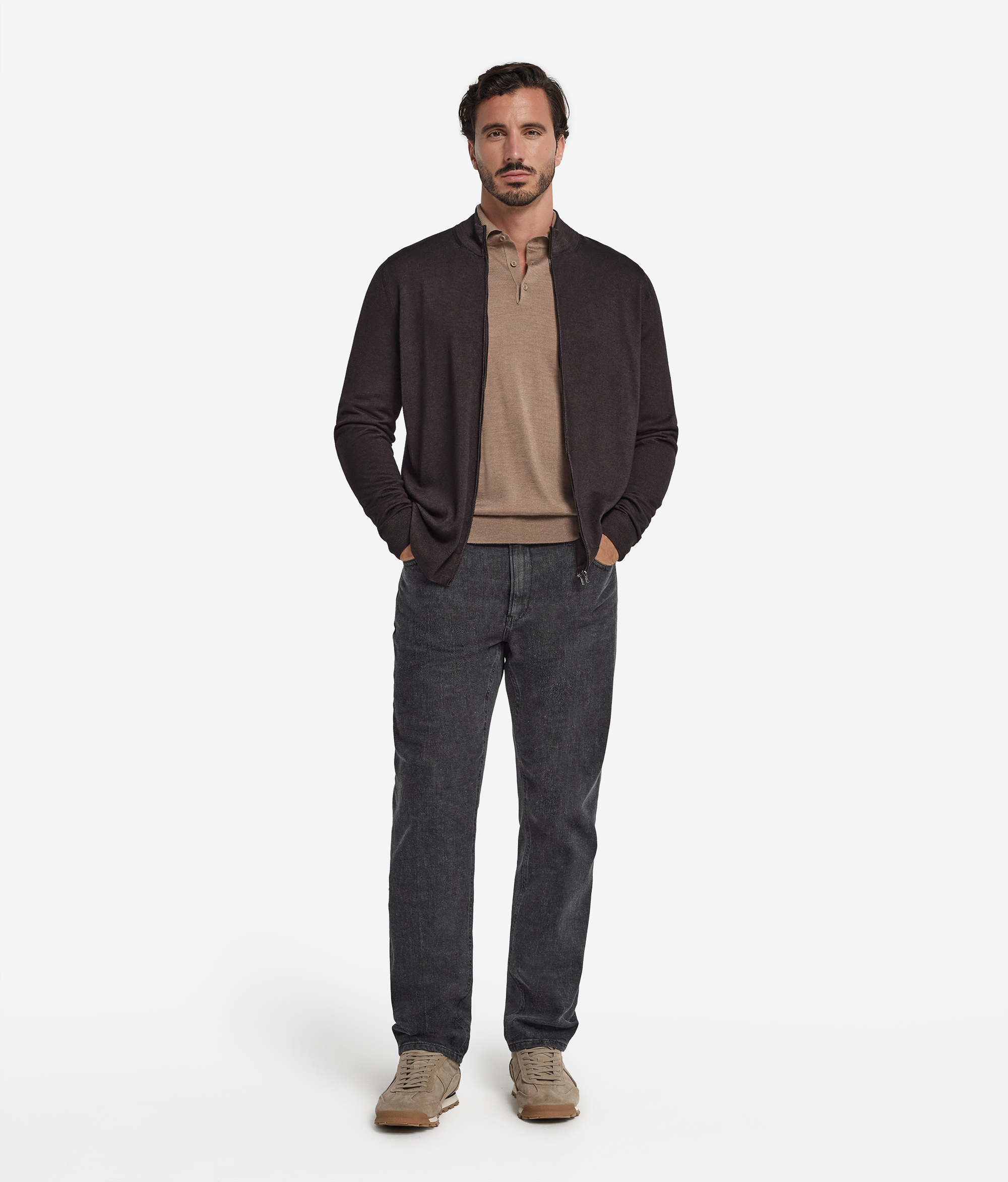 Этот лаконичный базовый кардиган из кашемира сочетает в себе утончённую элегантность и практичность. Мягкость благородной пряжи гармонично подчёркнута застёжкой-молнией, которая придаёт модели современный и непринуждённый характер. Универсальный и изысканный, он органично впишется в любой образ — от повседневного до более формального.