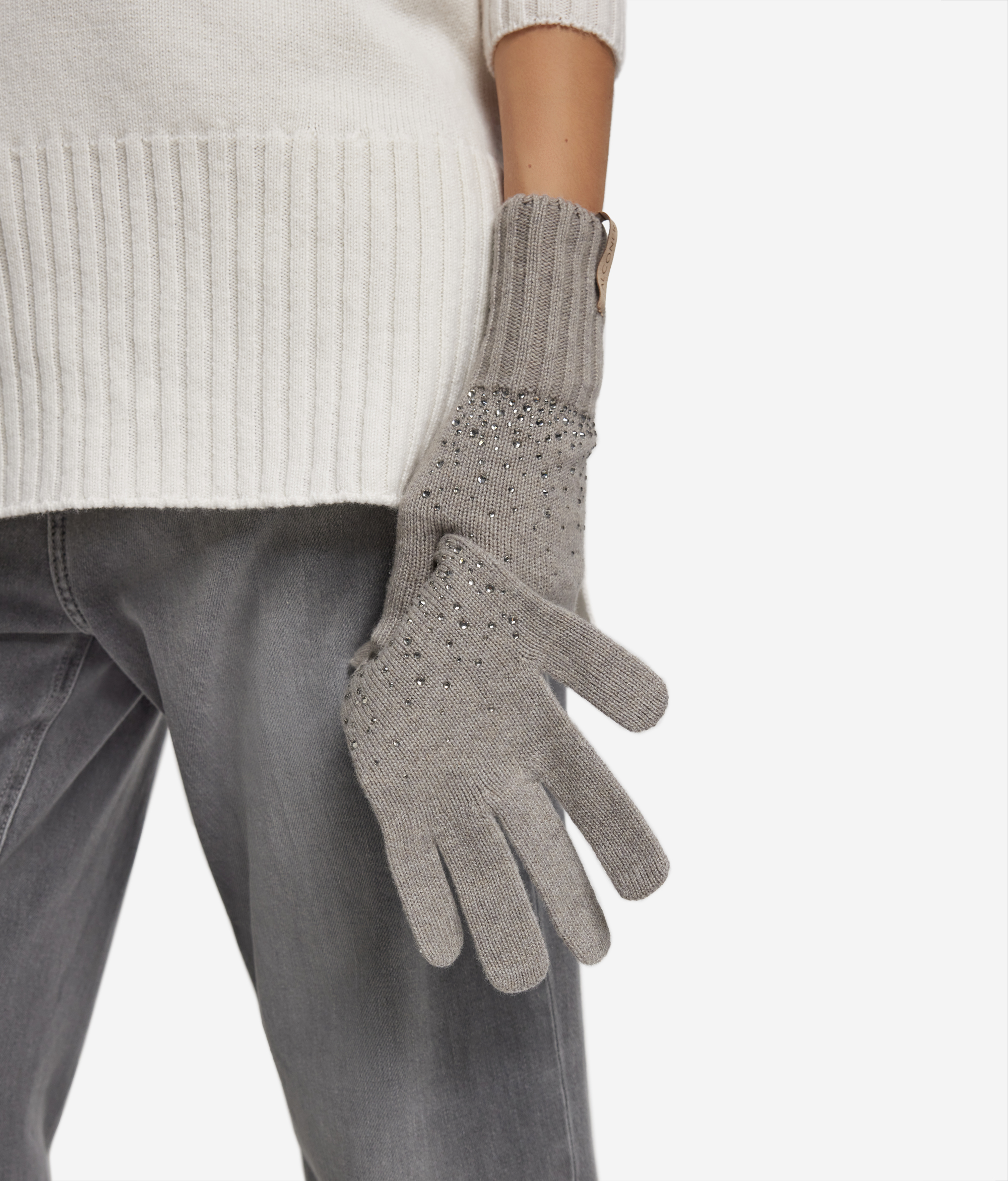Перчатки из кашемира со стразами