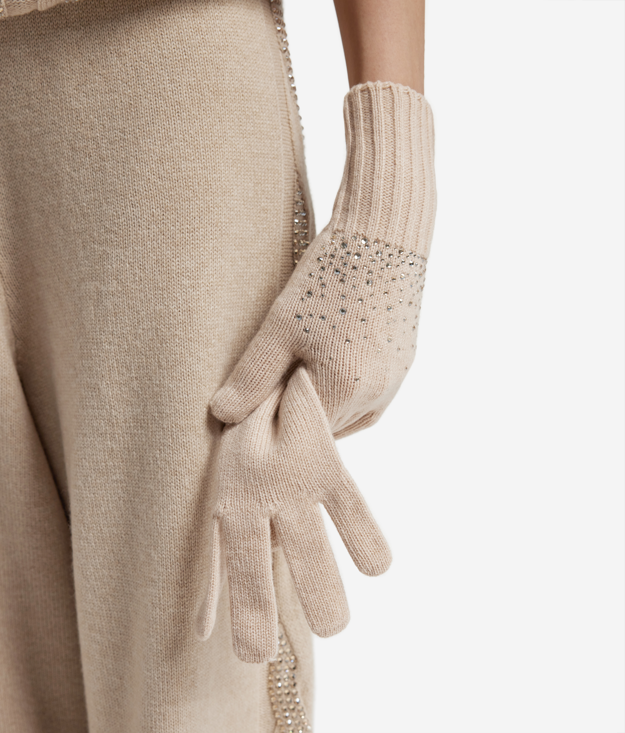 Перчатки из кашемира со стразами