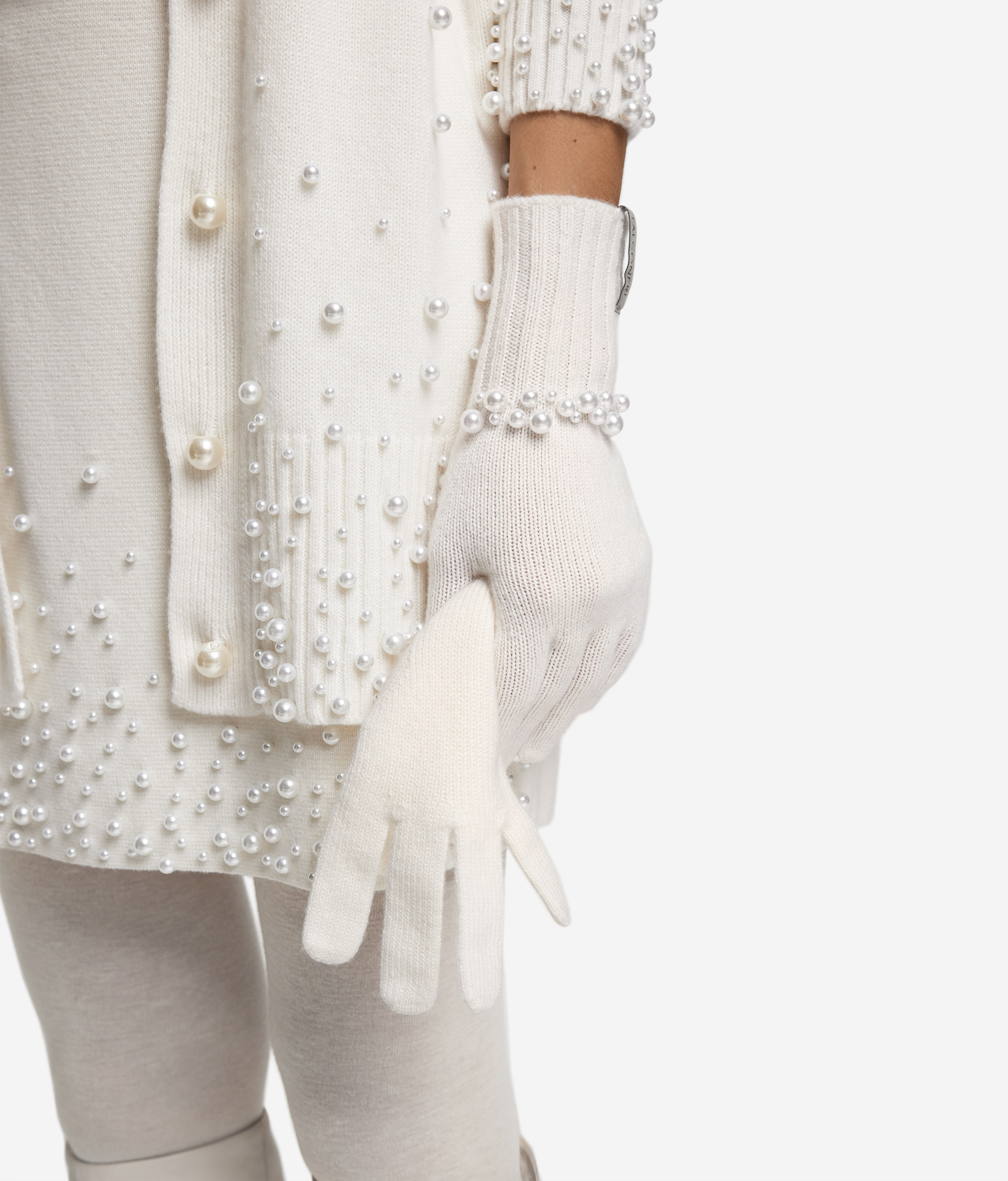 Воплощение нежности и света: перчатки из ультрамягкого кашемира сочетают функциональность и утончённость, добавляя в образ современный штрих. Манжеты в рубчик подчёркивают изящество рук, а переливающиеся стразы превращают аксессуар почти что в ювелирное украшение. Идеальная деталь, способная преобразить даже самый лаконичный наряд.