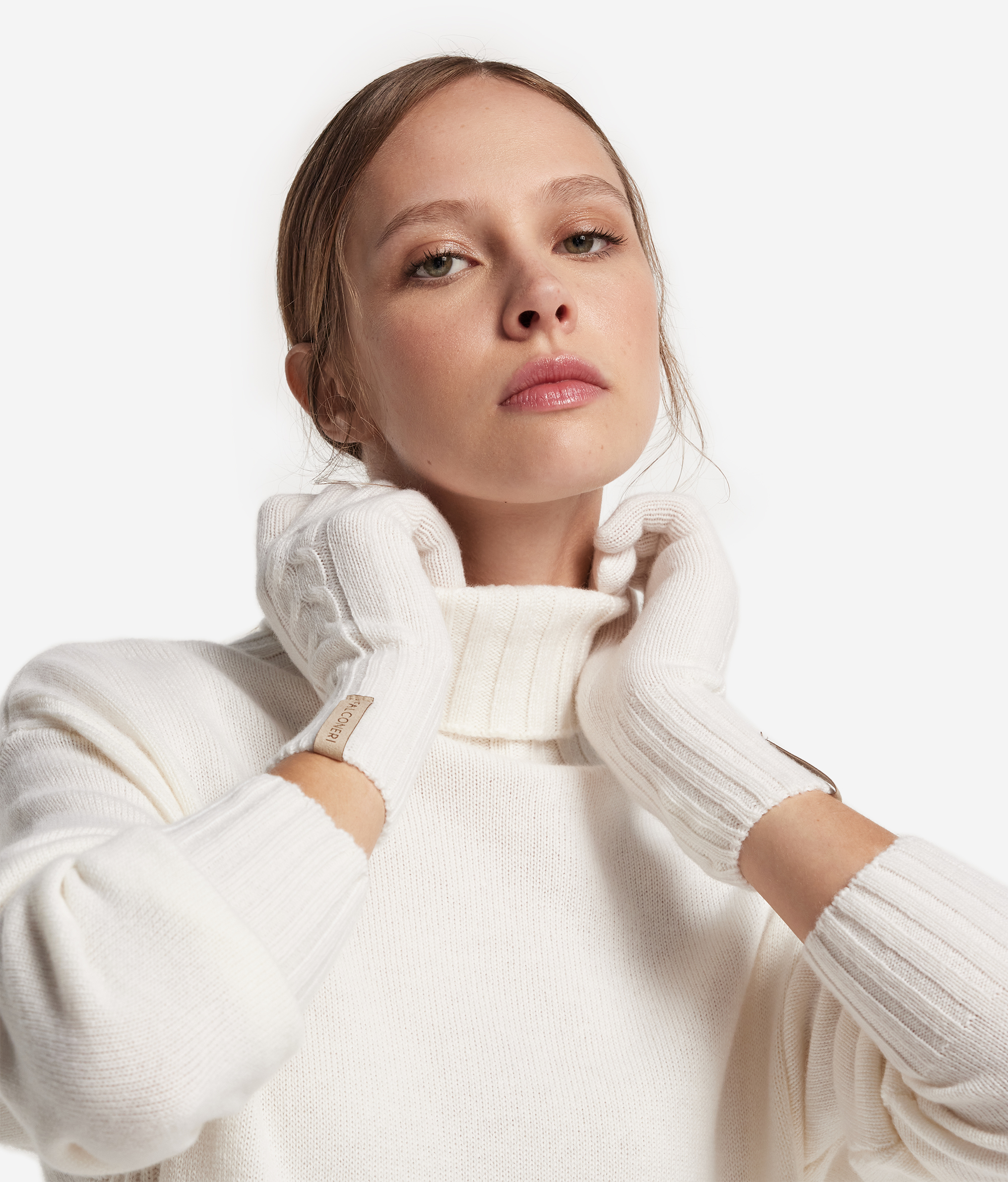 Деталь, способная преобразить образ: перчатки из ультрамягкого кашемира с узором «косичка» — это классика с ярким характером. Мягкие и тёплые, они станут стильным спутником для прохладных дней.