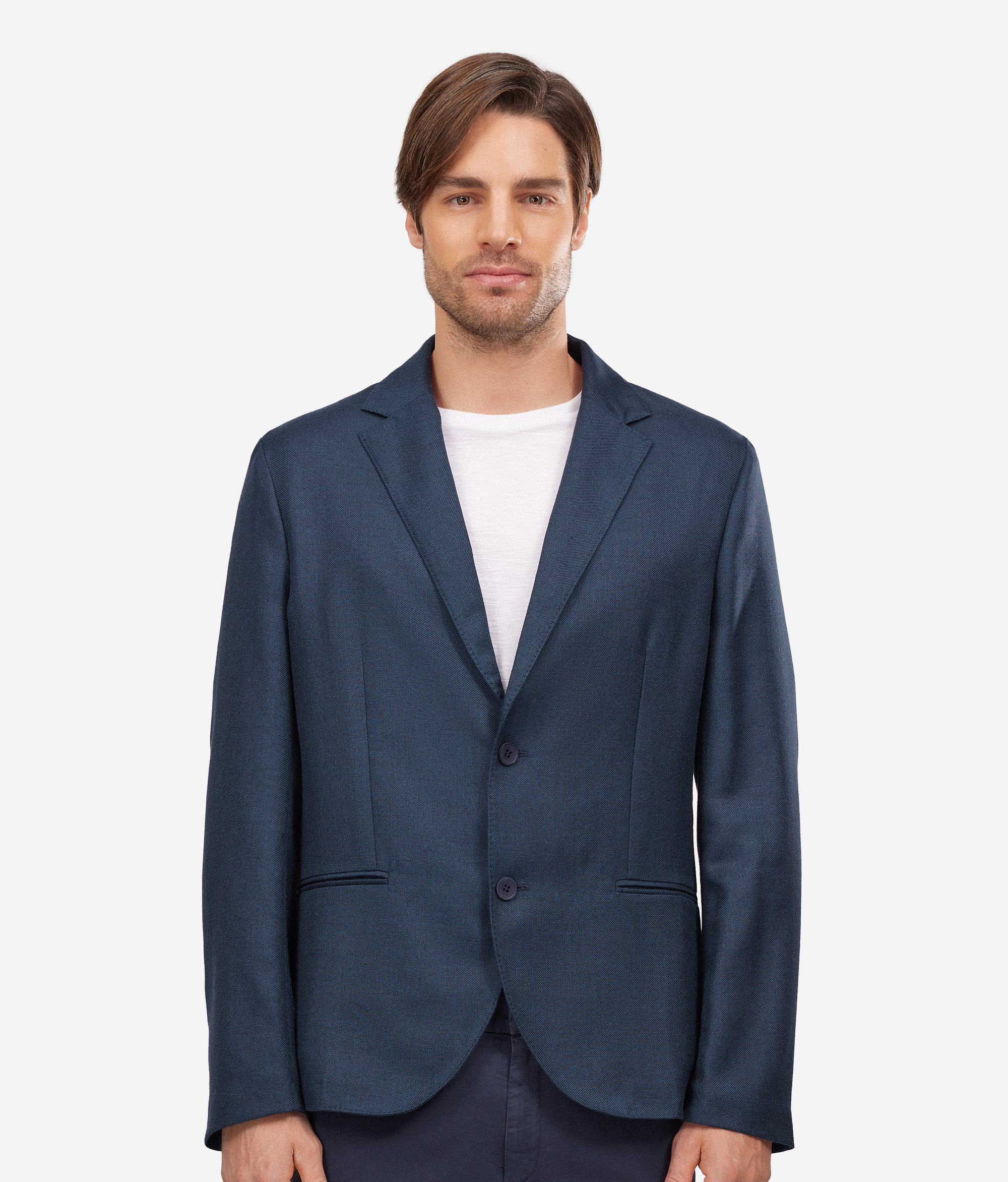 Однобортный жакет, изготовленный из роскошной ткани, содержащей кашемир, шелк и лен. Застежка на две пуговицы располагается по центру, а спереди расположены накладные карманы. Нежная текстура материала гарантирует комфортную посадку.