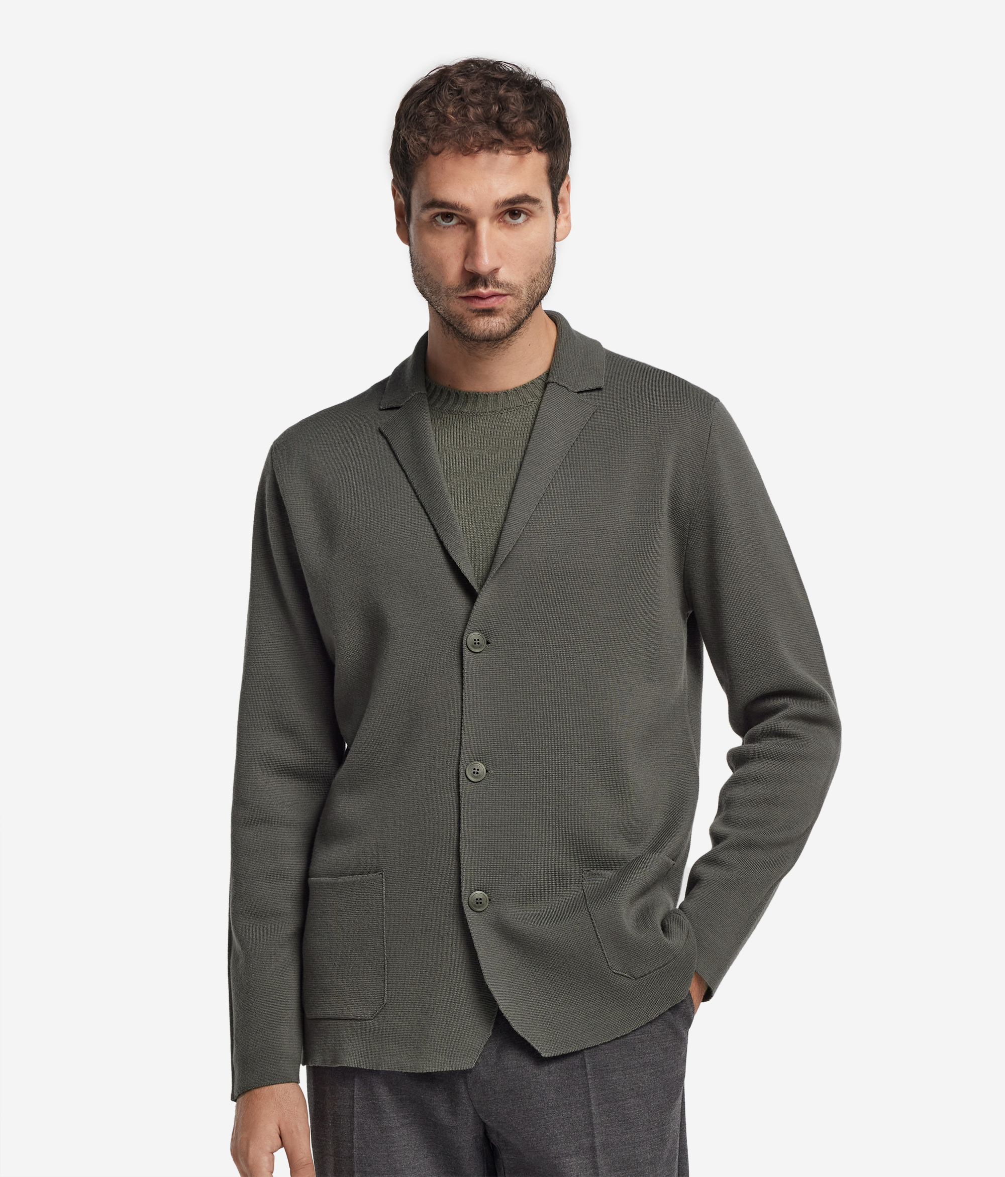 Этот пиджак, выполненный из высококачественного шерстяного вязанотканого полотна, отличается особым благородством. Элегантный отложной воротник, длинные рукава и однобортная застёжка на две пуговицы придают модели утончённую выразительность. Функциональные накладные карманы, оставаясь незаметными, гармонично дополняют прямой силуэт, который обеспечивает полную свободу движений.