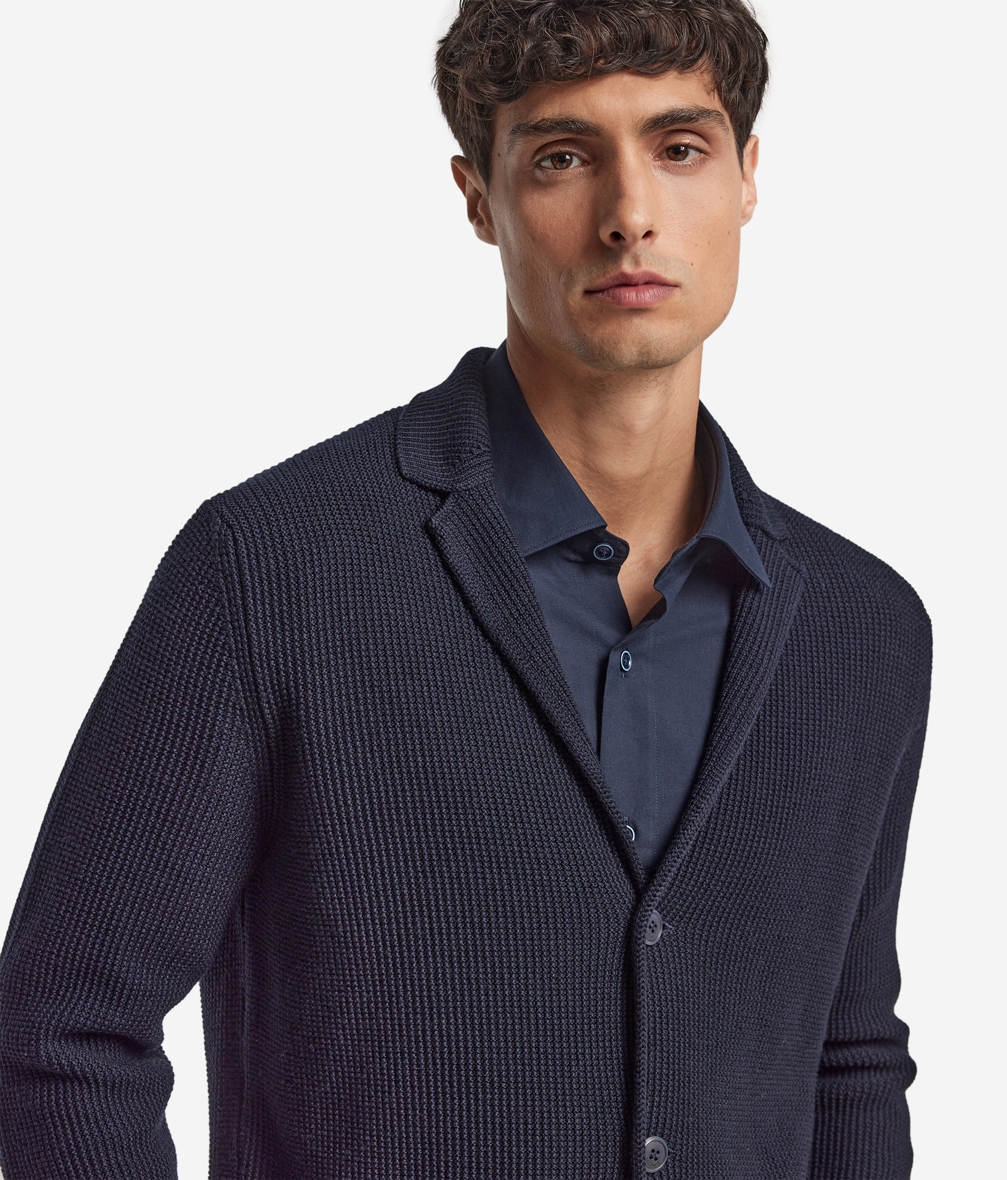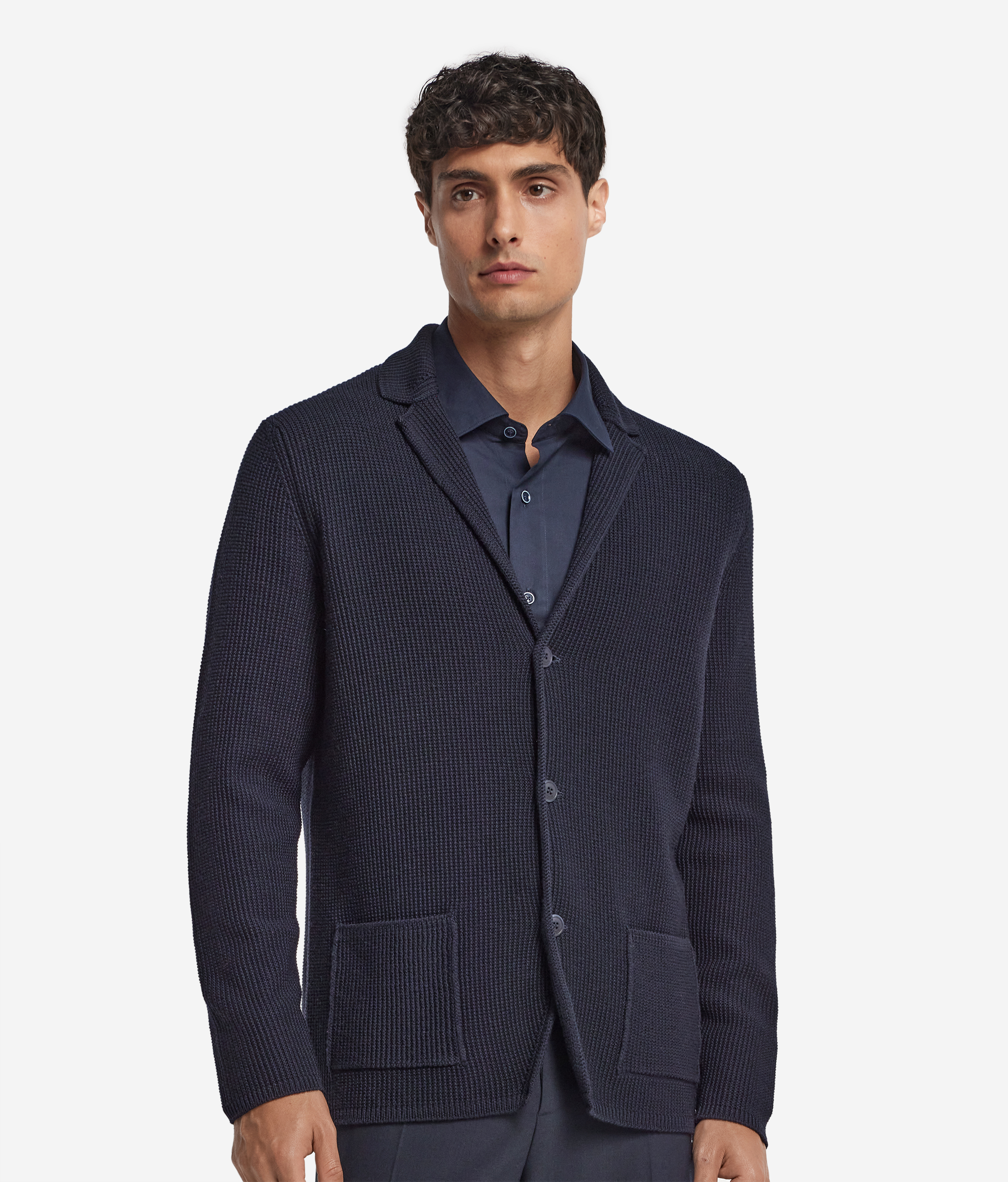 Этот пиджак из мягкой шерстяной пряжи — — элегантная основа изысканного гардероба. Его особенность — утончённая рисовая вязка, которая придаёт изделию фактурность и характер. Модель создана с акцентом на вневременные детали — лацканы, длинные рукава и однобортную застёжку на три пуговицы. Накладные карманы спереди добавляют практичности, а прямой крой обеспечивает комфорт и универсальность. Идеальный выбор для образов в духе непринуждённой элегантности.