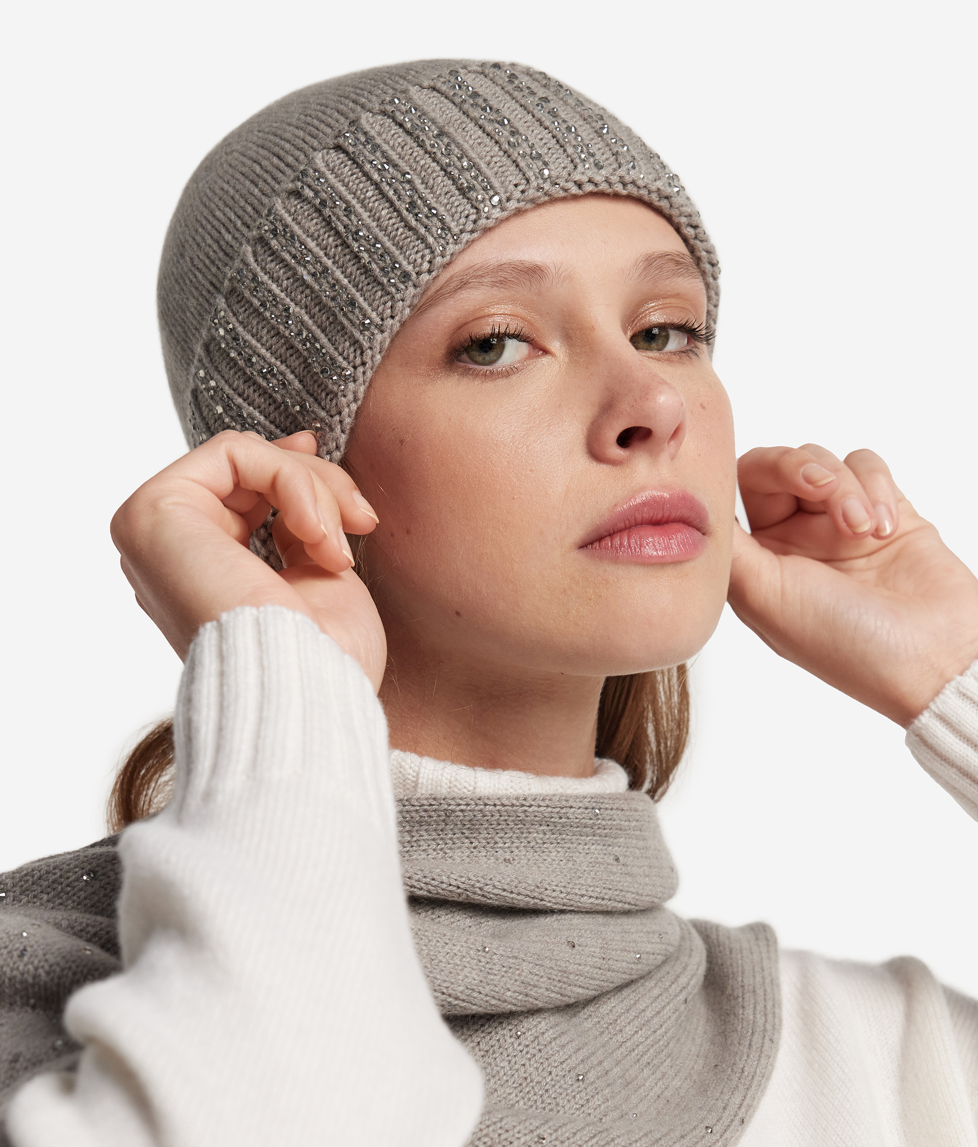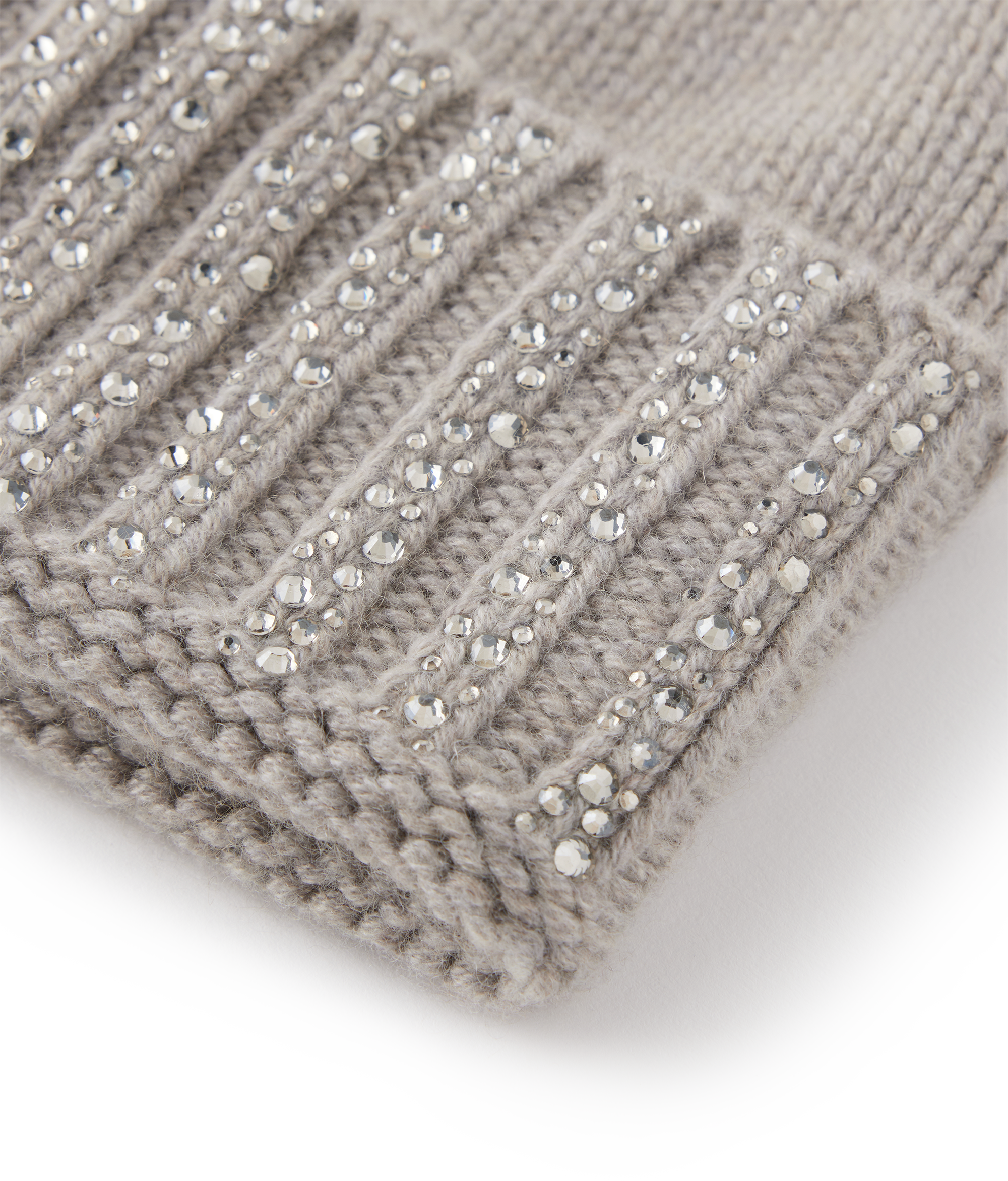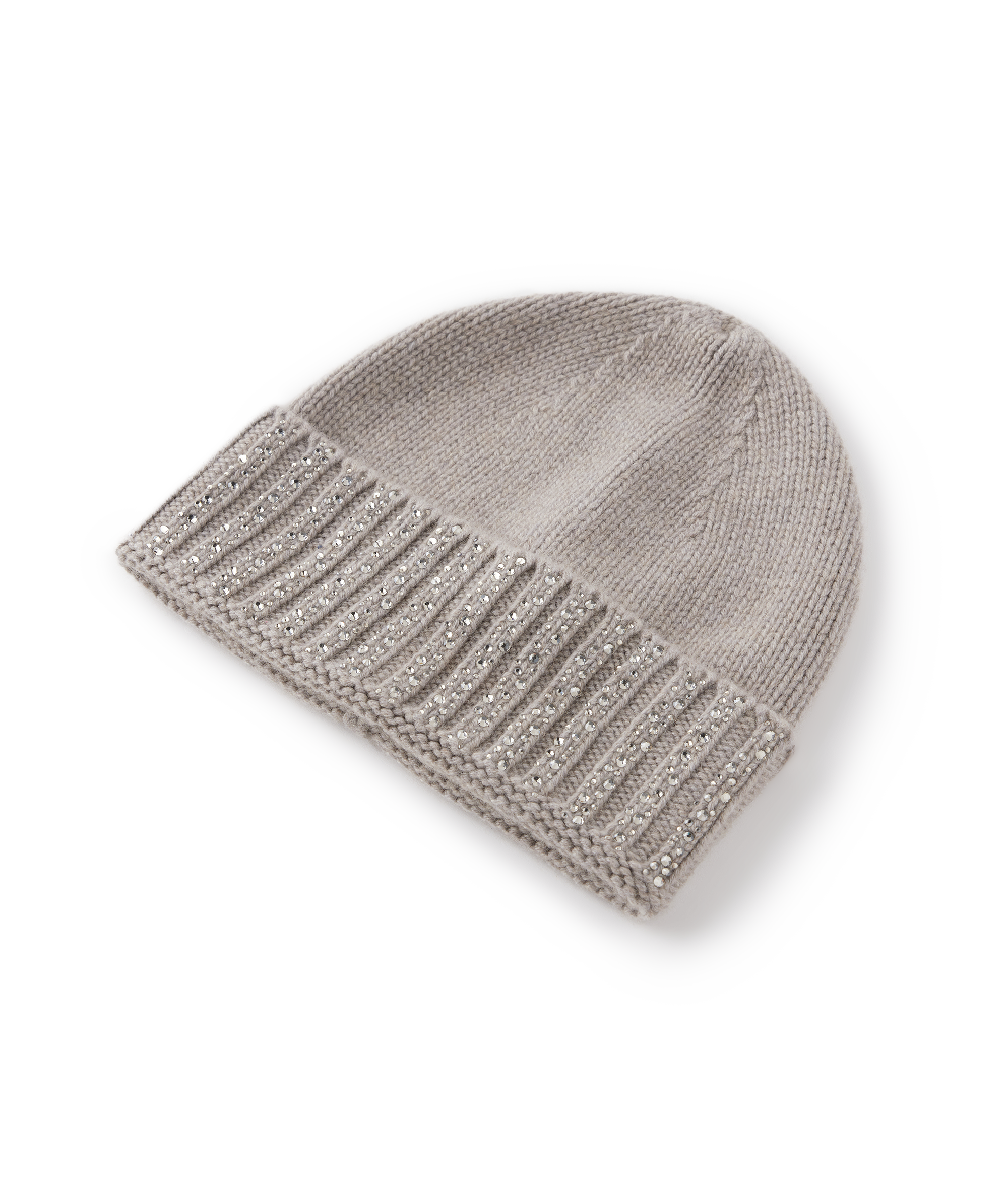Выполненная из качественного ультрамягкого кашемира, эта теплая шапка словно окутывает голову нежными объятиями. Бортик в рубчик придаёт элегантную нотку, а вкрапления страз привлекают внимание, создавая лёгкое, ненавязчивое мерцание. Этот стильный аксессуар станет идеальным завершающим штрихом утончённого образа.