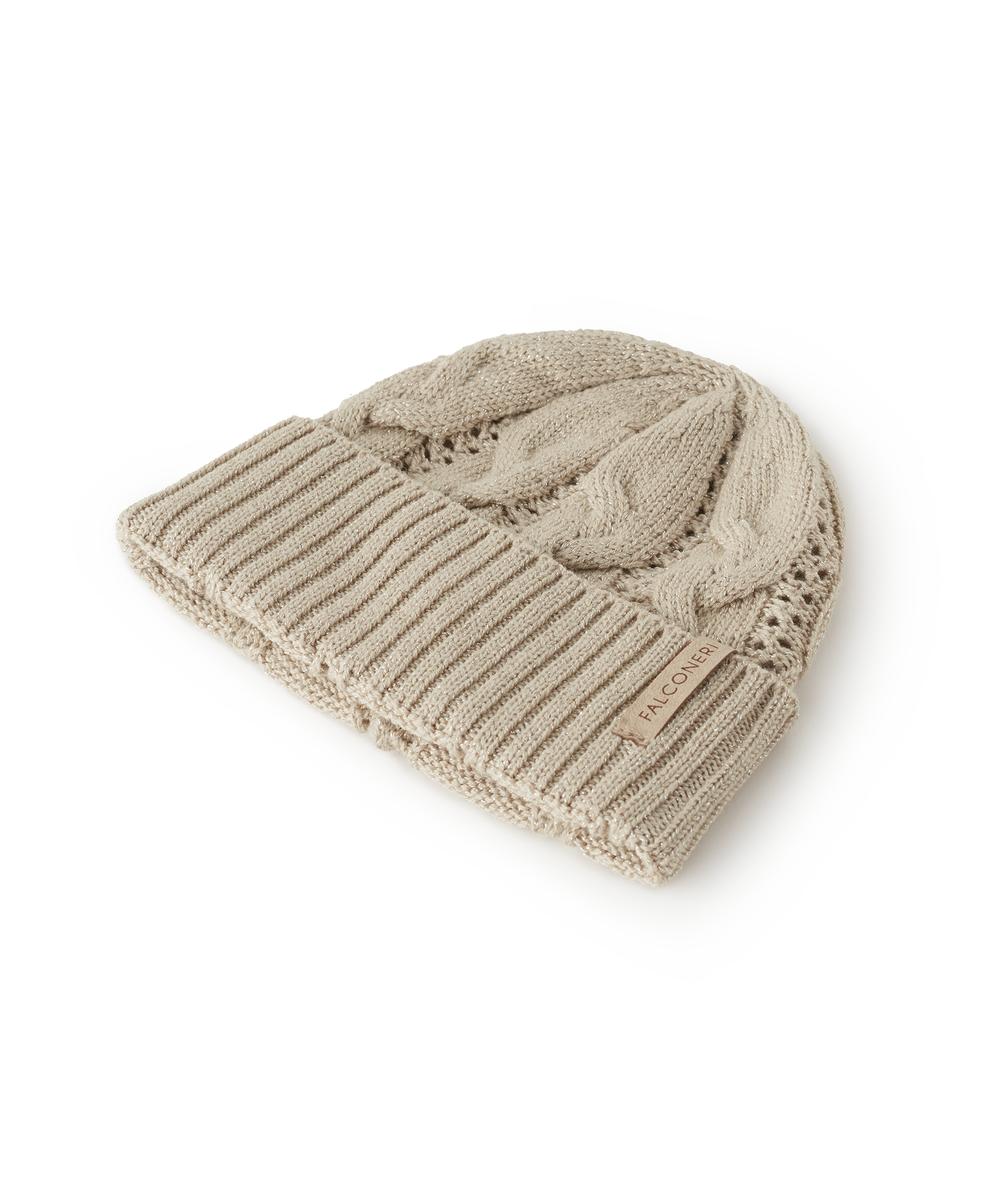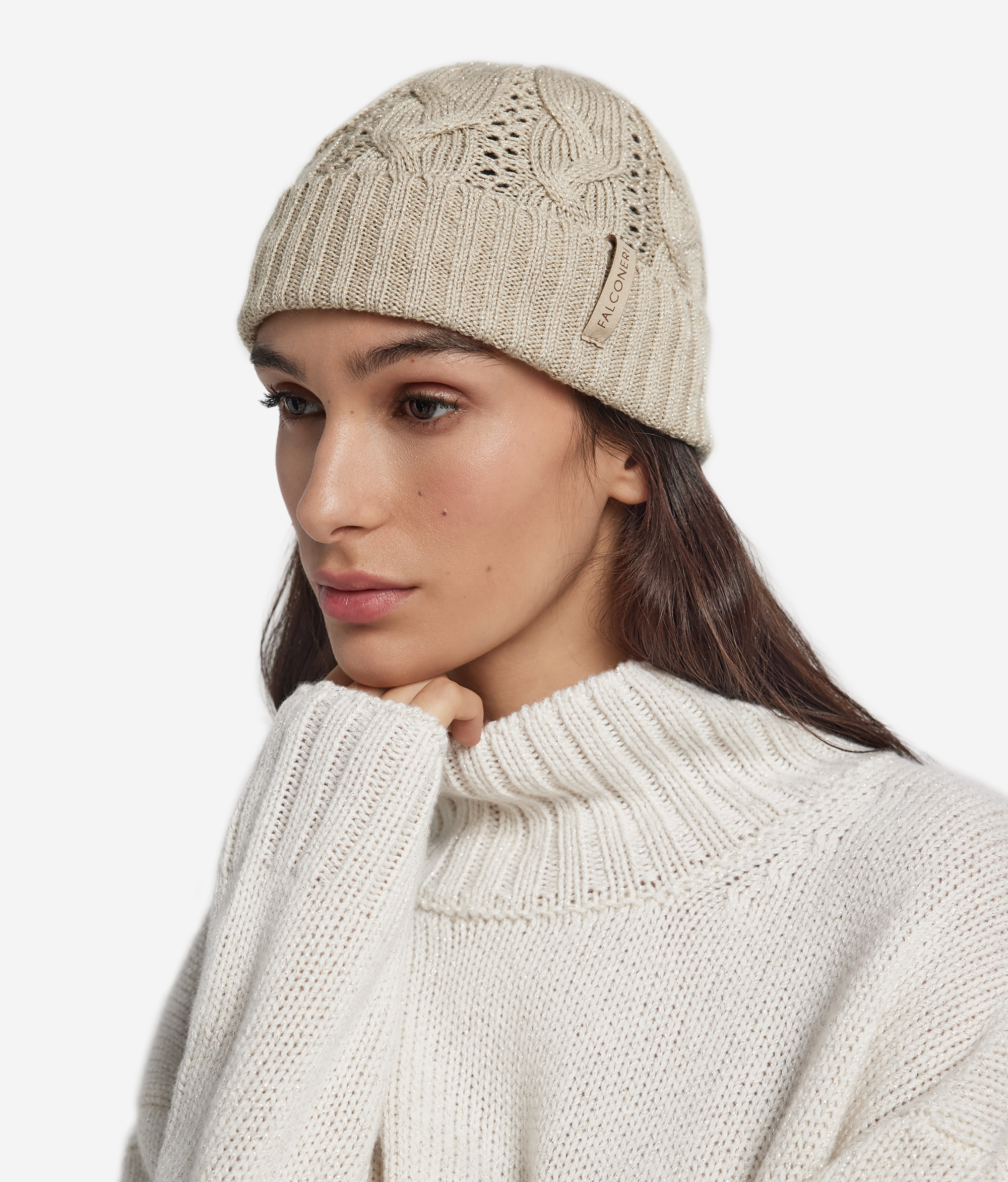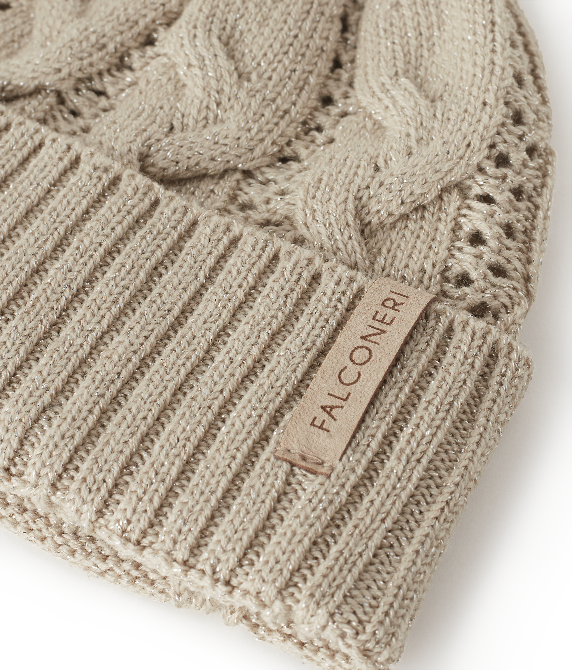 Шапка из шерсти с люрексовыми нитями чарует тонким блеском. Ажурная вязка и вертикальная «косичка» создают изысканный контраст фактур, придавая модели женственность и современный характер, а отделка в рубчик подчёркивает утончённость исполнения.