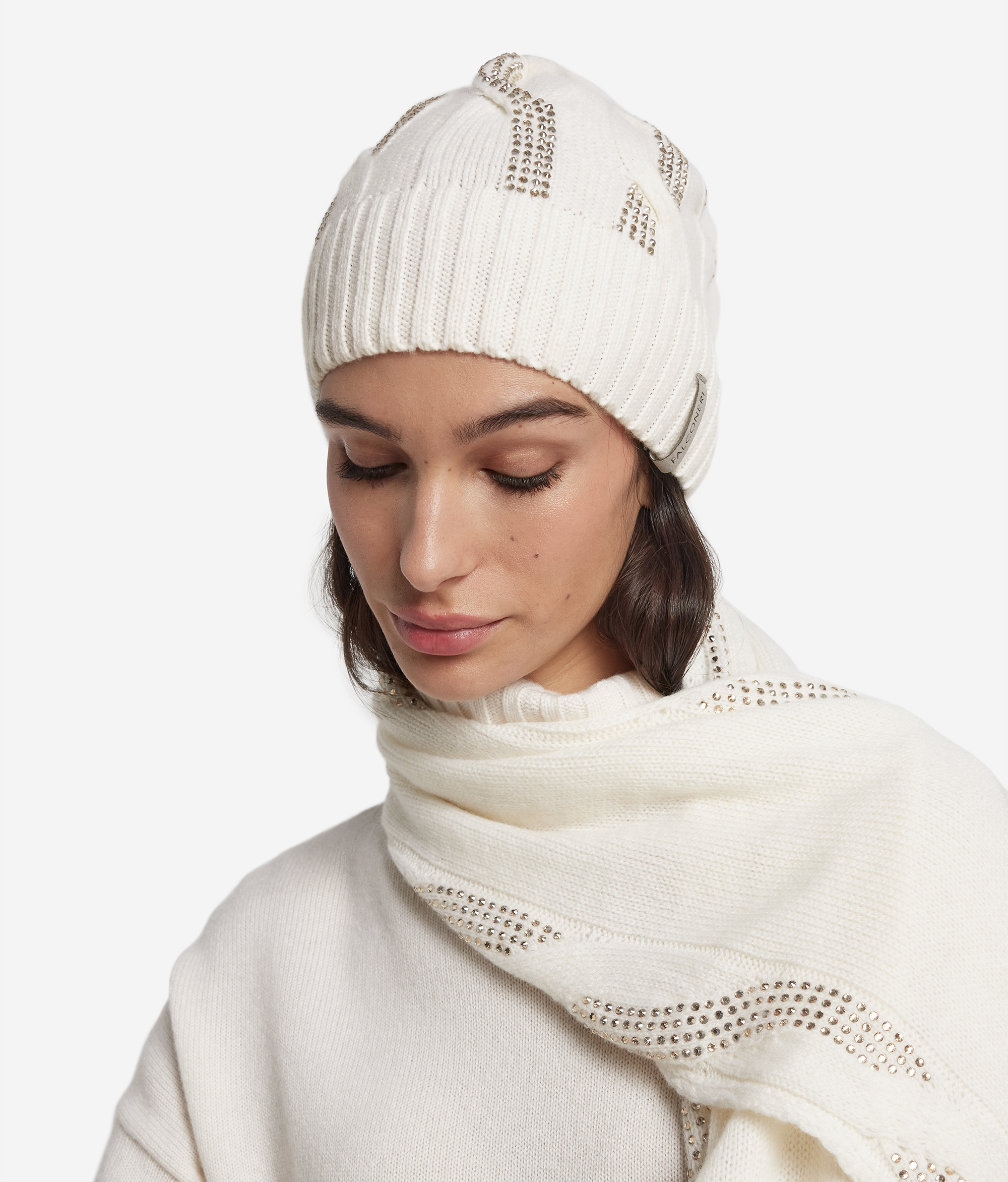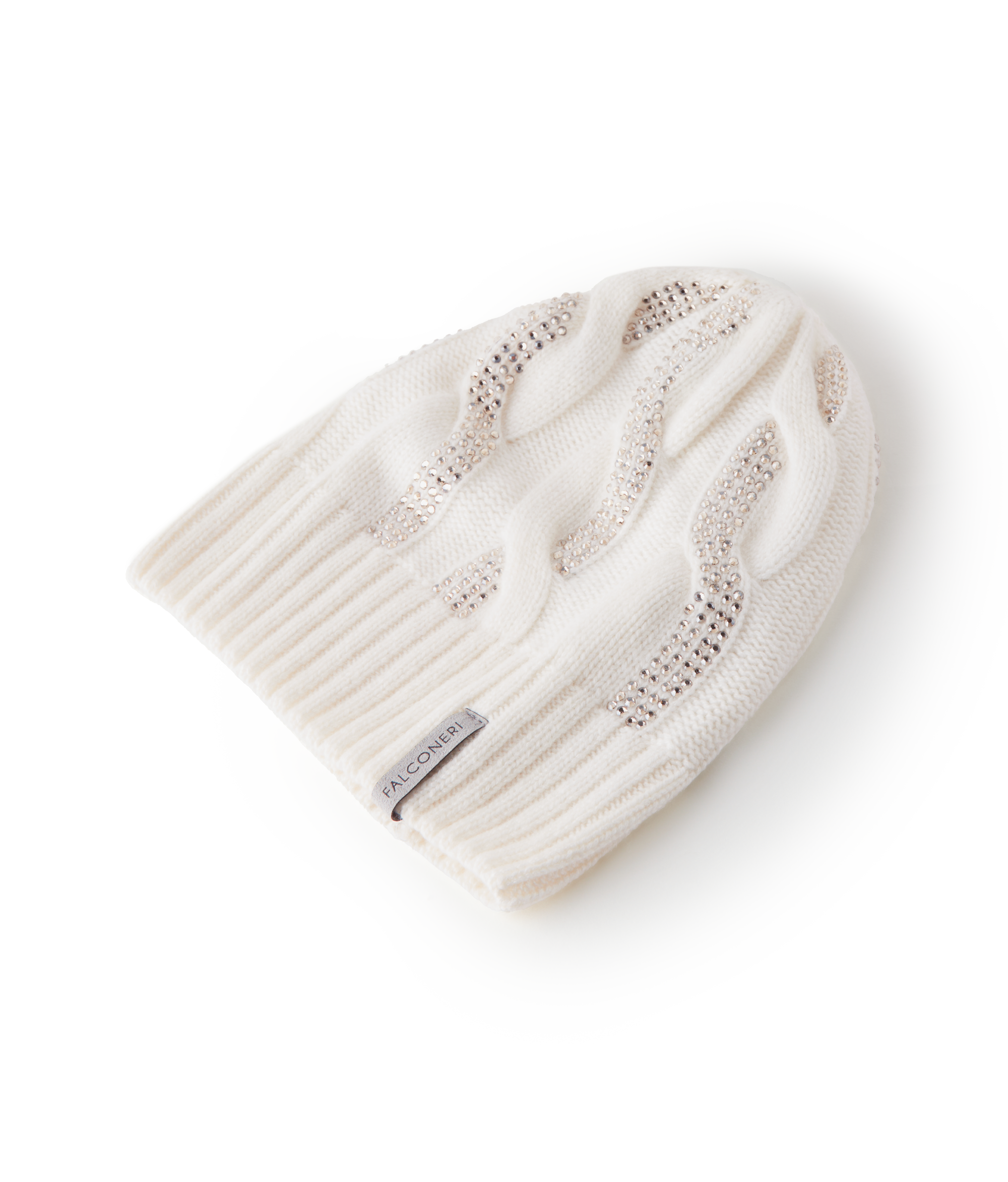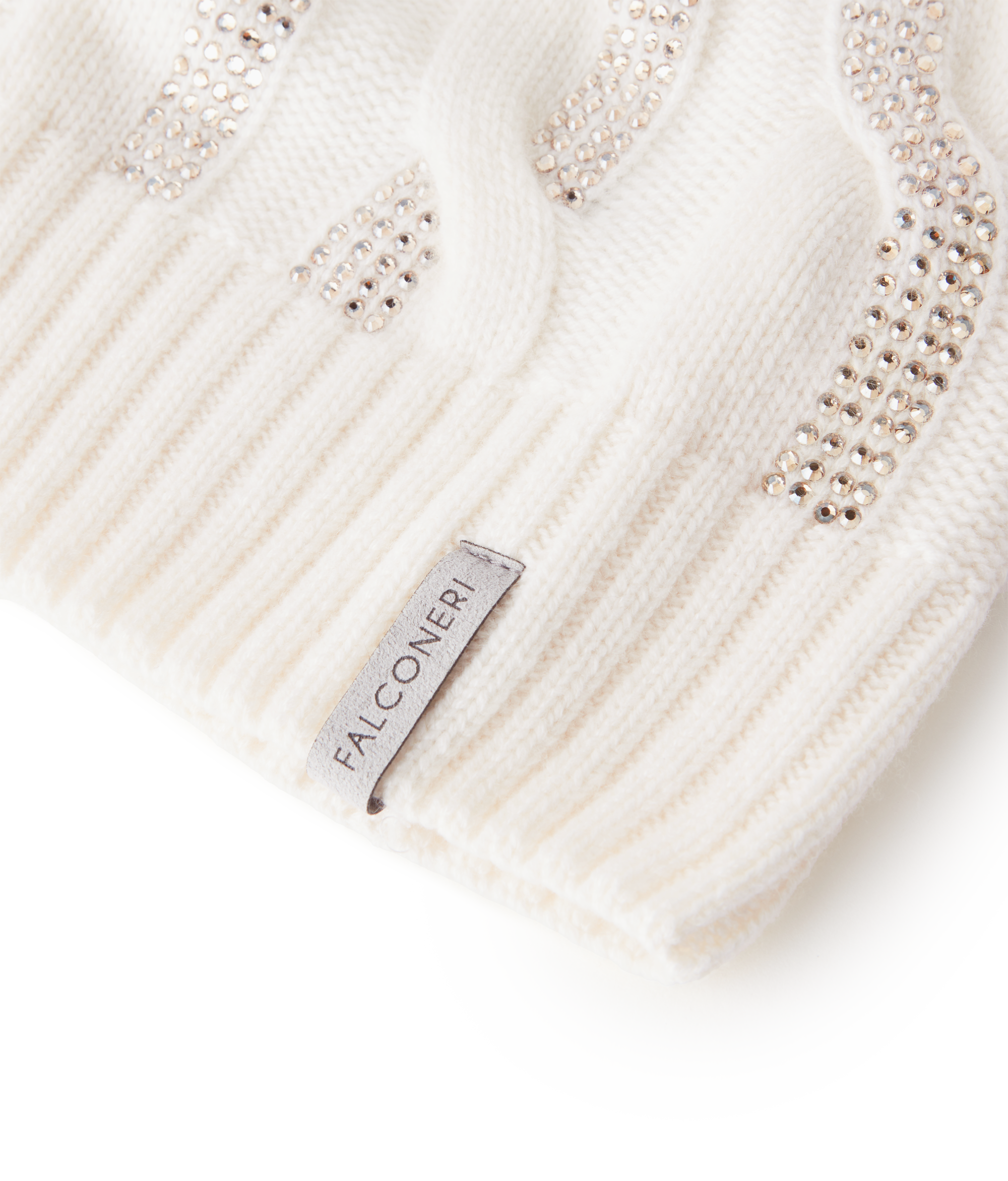 Шапка с «косичкой» и стразами из ультрамягкого кашемира