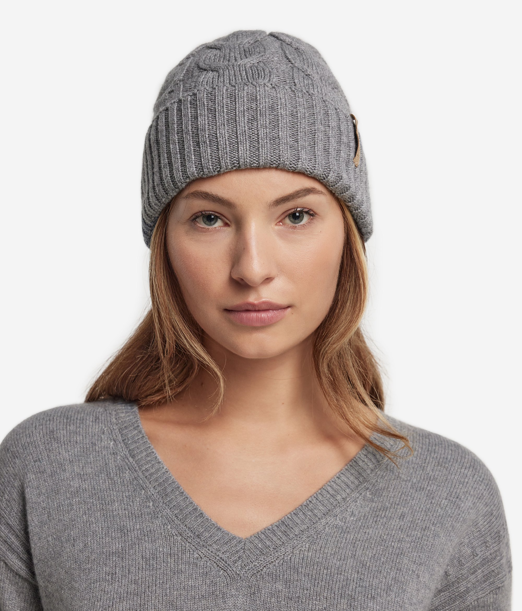 Эта шапка излучает особую утончённость и выразительность благодаря ультрамягкому кашемиру и изящному узору «косичка». Классическая английская резинка по краю подчёркивает нежную фактуру пряжи и наделяет этот зимний аксессуар непреходящим очарованием.