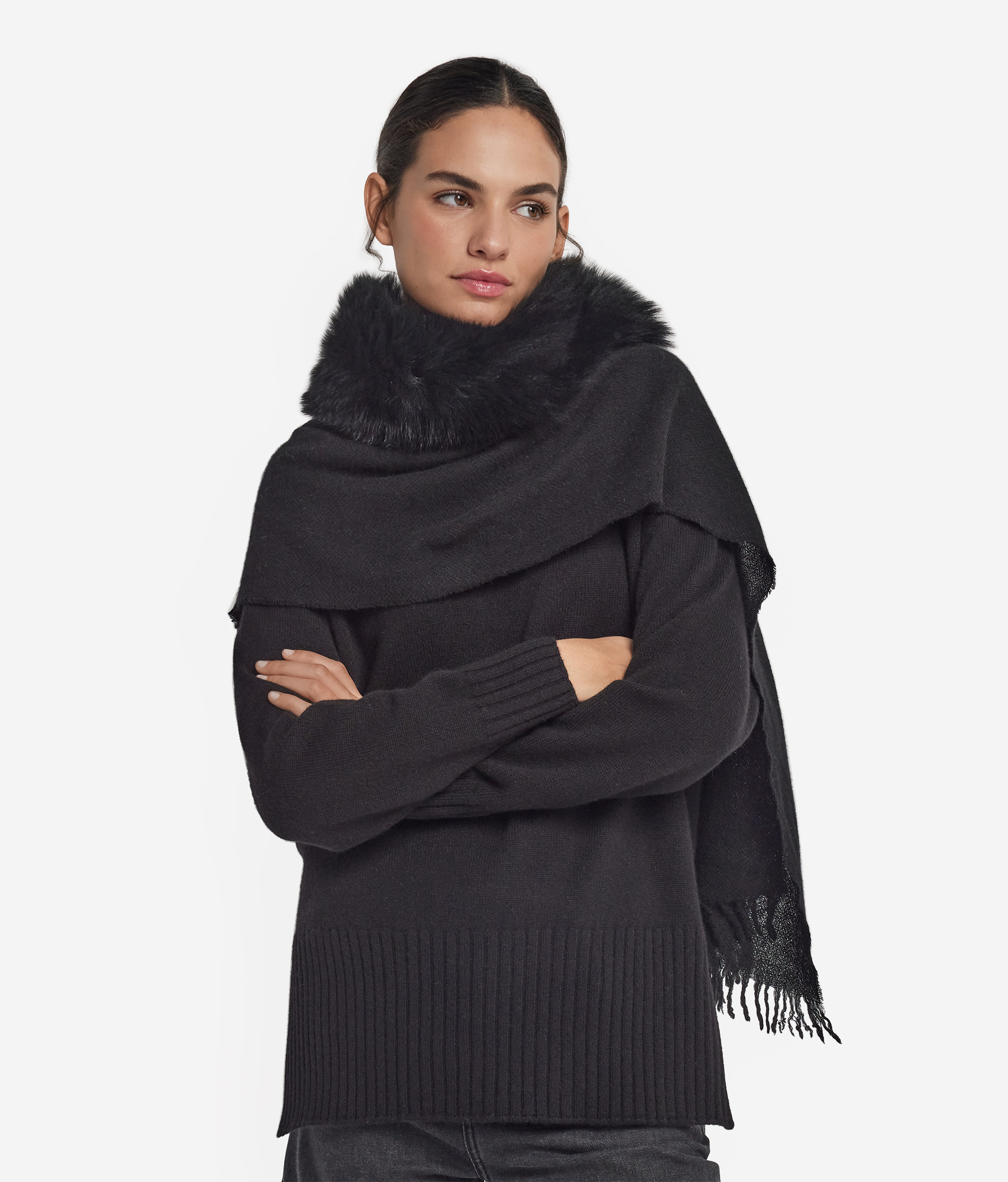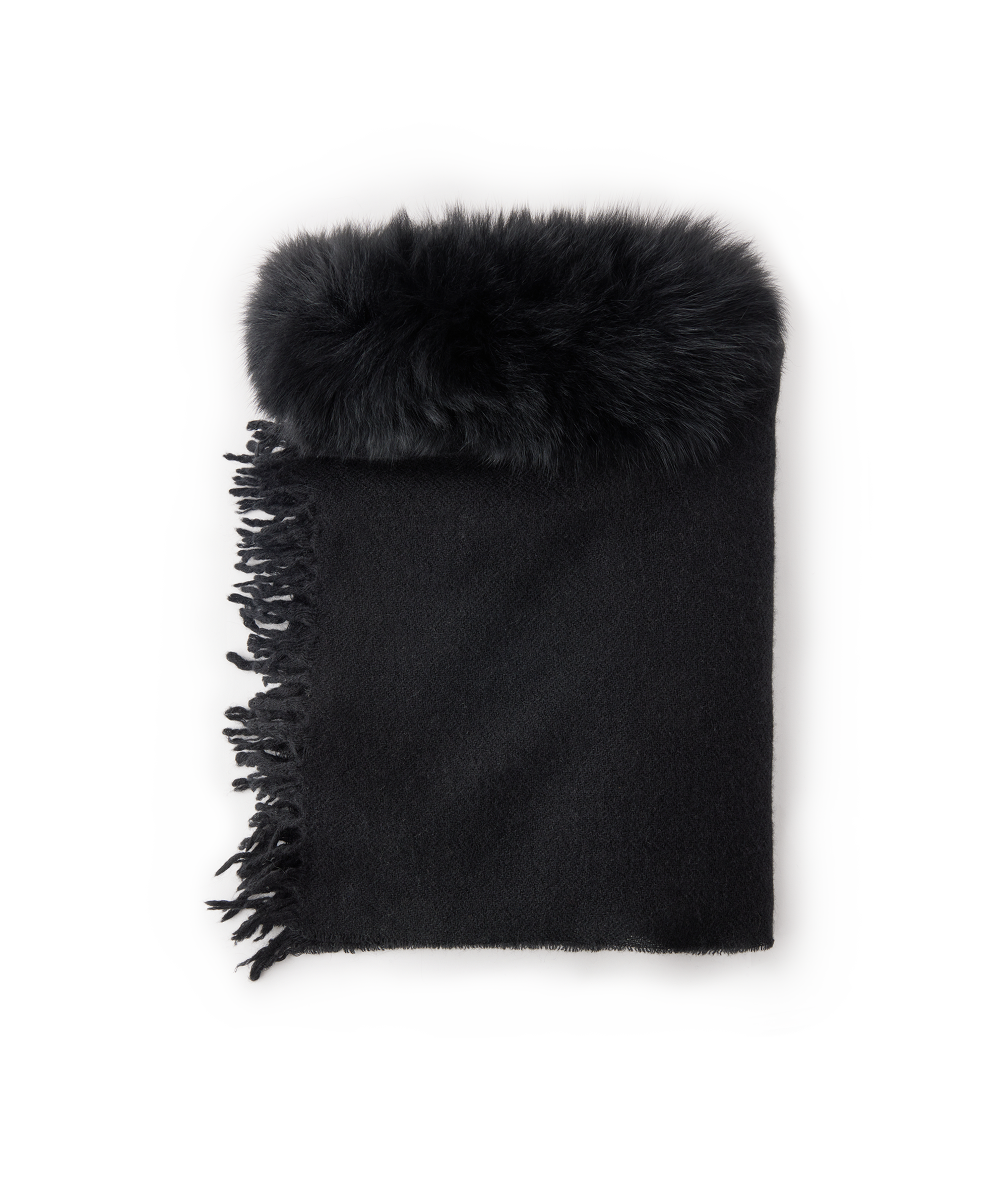 Этот шарф из кашемира подарит вам особое обволакивающее тепло. В нём идеально сочетаются натуральная мягкость пряжи и изысканная отделка из лисьего меха.