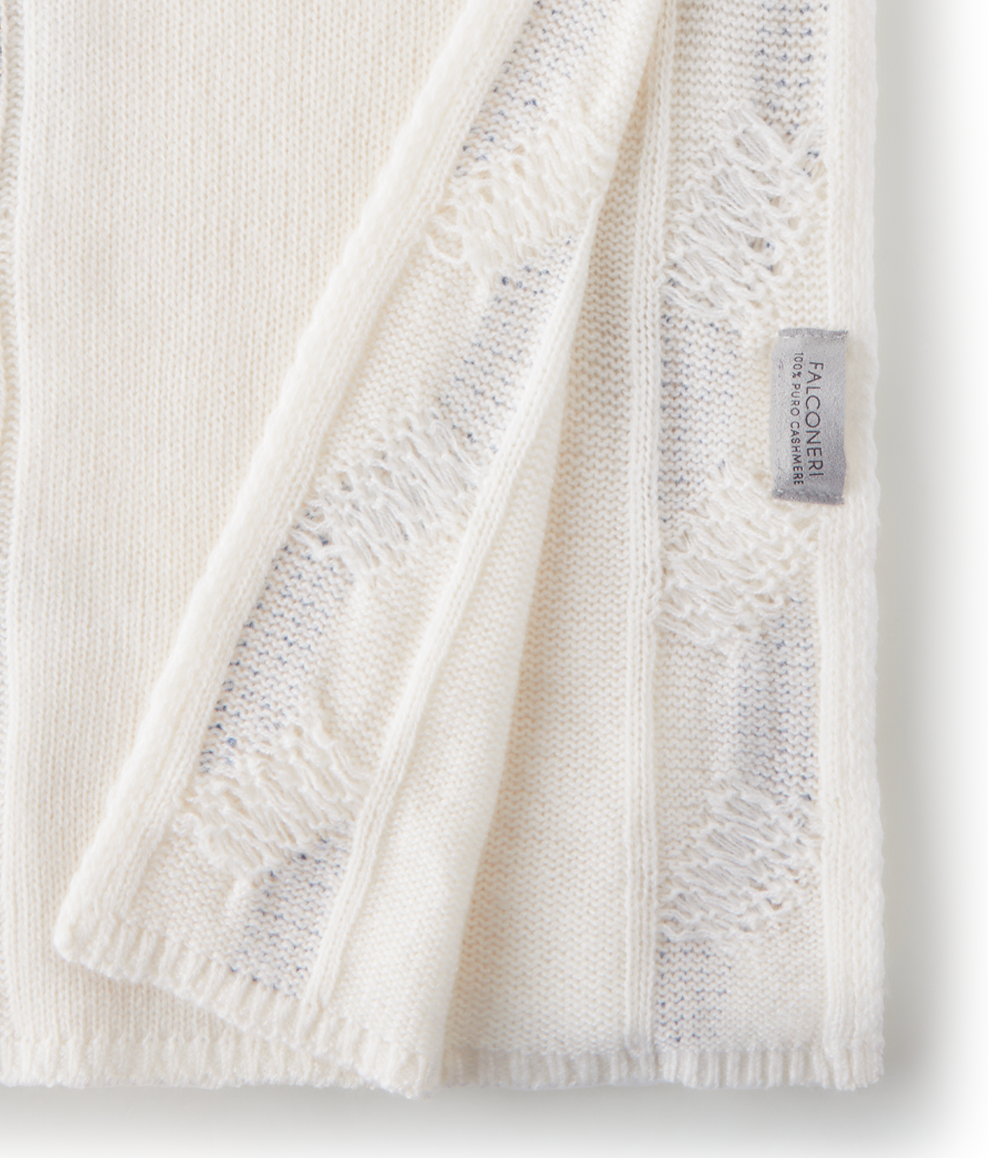 Этот шарф из нежнейшего ультрамягкого кашемира пленяет утончённостью, проявляющейся в каждой детали. Вертикальный узор «косичка» по краям придаёт фактуре глубину, а мерцание стразов наполняет изделие деликатным светом. Отделка в рубчик по краям подчёркивает форму, превращая этот аксессуар в идеальный акцент как для повседневных, так и для более элегантных сочетаний.