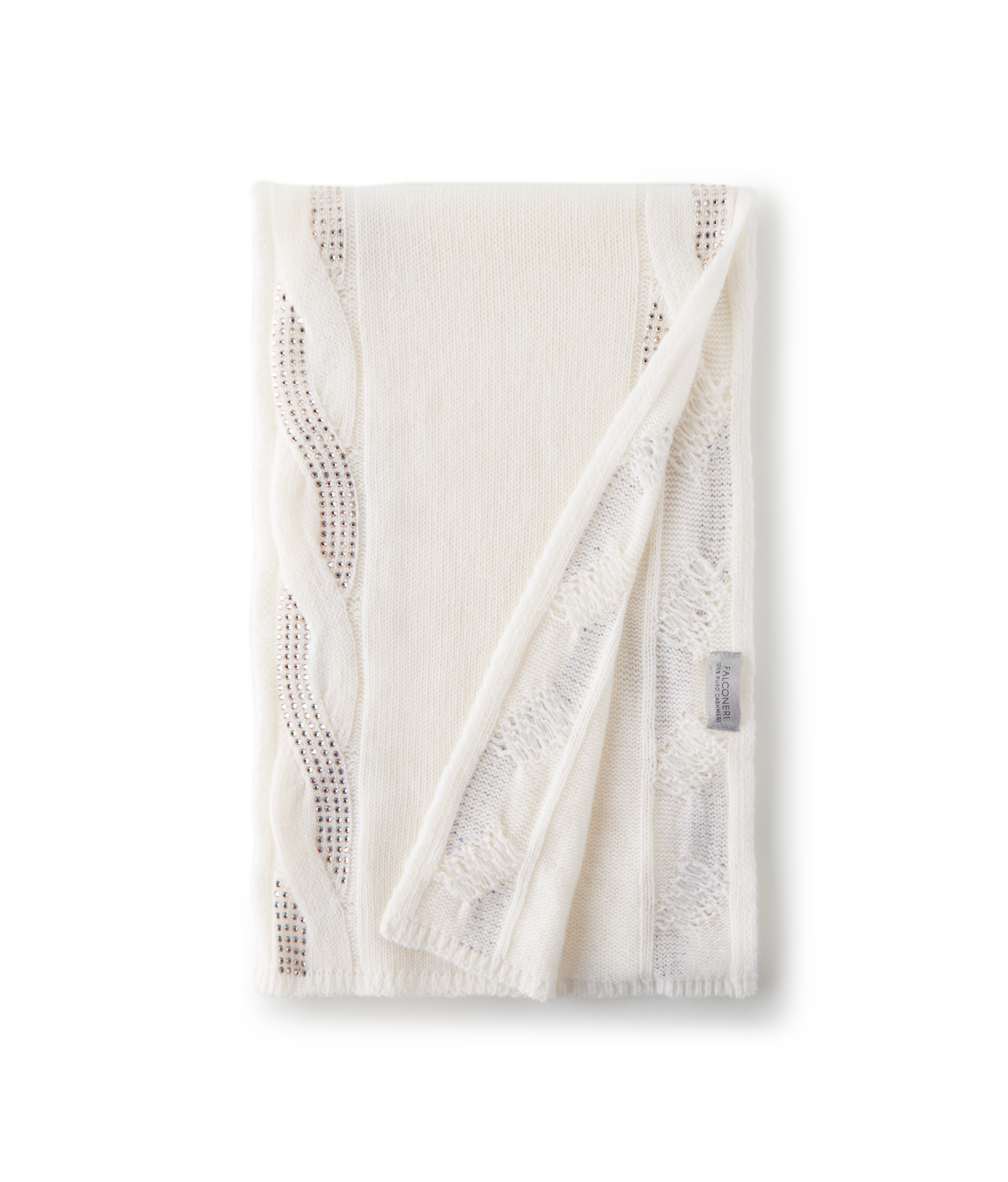 Шарф с «косичкой» и стразами из ультрамягкого кашемира