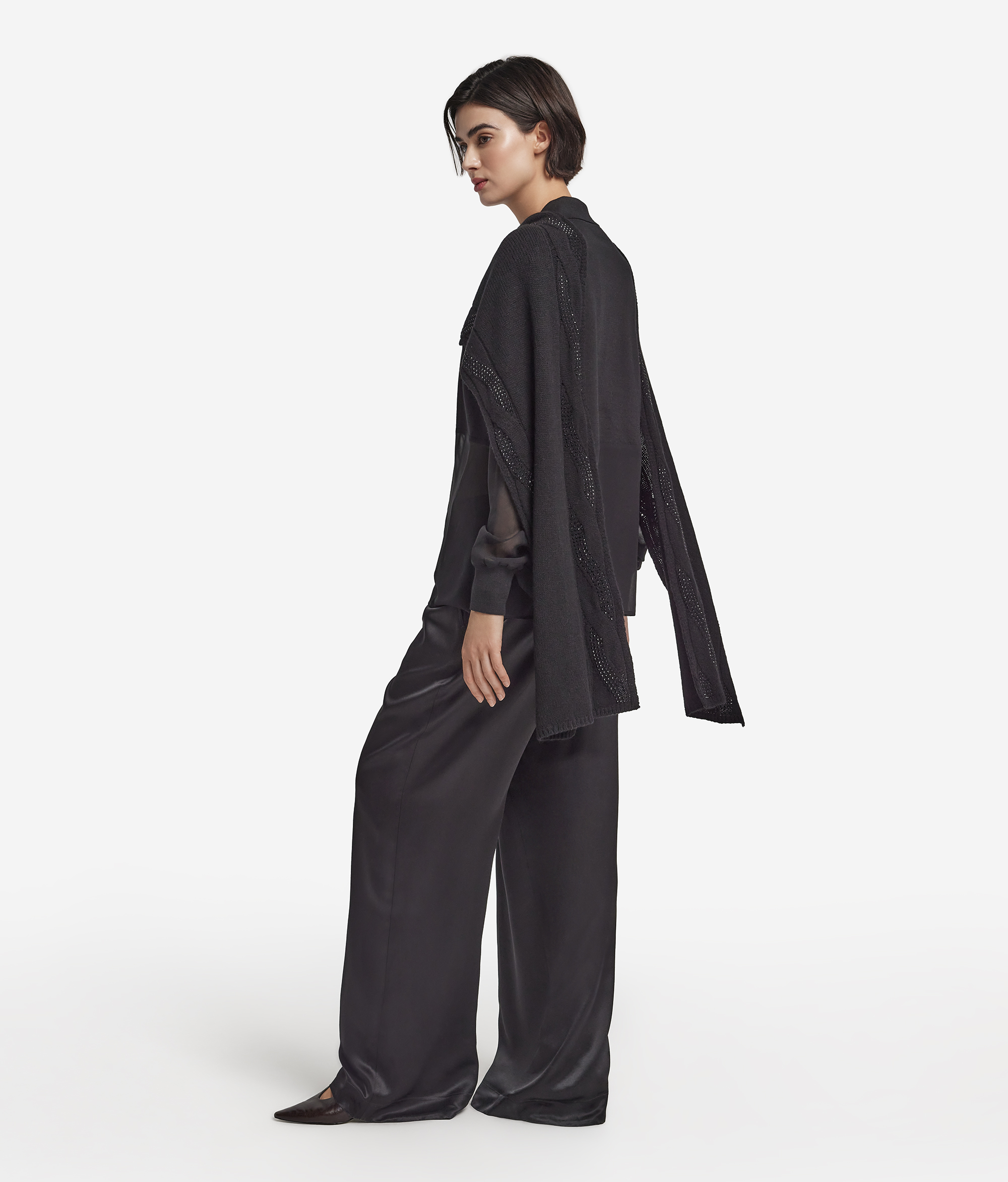 Этот шарф из нежнейшего ультрамягкого кашемира пленяет утончённостью, проявляющейся в каждой детали. Вертикальный узор «косичка» по краям придаёт фактуре глубину, а мерцание стразов наполняет изделие деликатным светом. Отделка в рубчик по краям подчёркивает форму, превращая этот аксессуар в идеальный акцент как для повседневных, так и для более элегантных сочетаний.