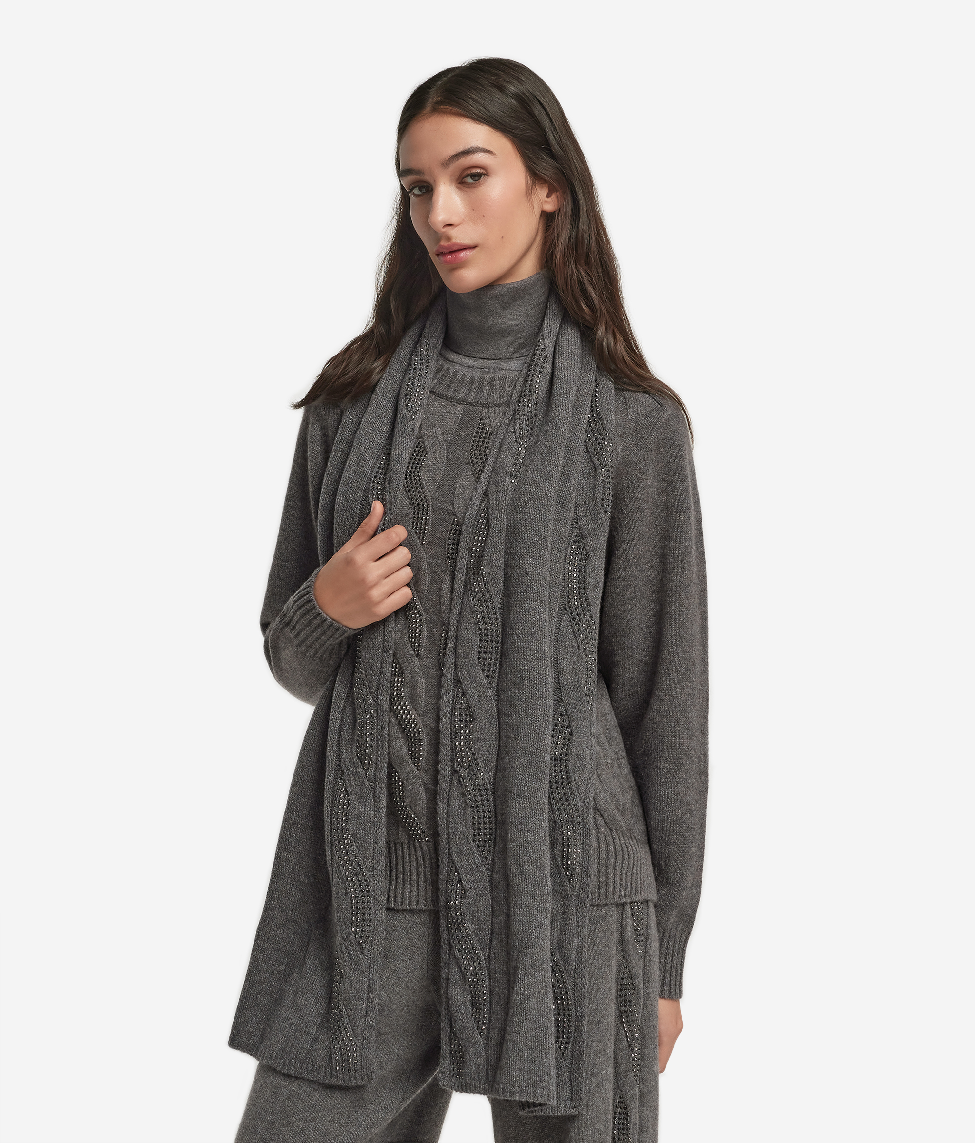 Шарф с «косичкой» и стразами из ультрамягкого кашемира