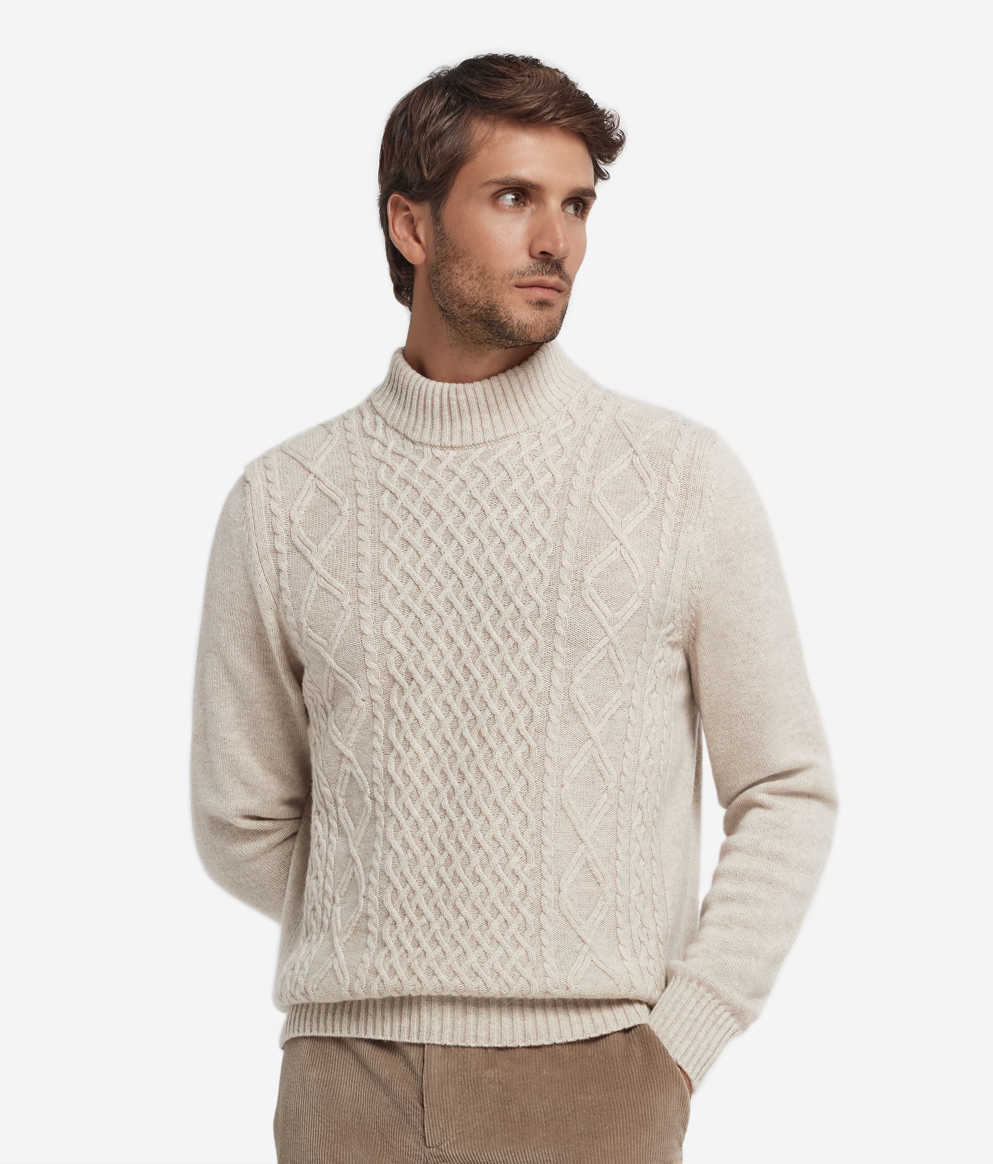 Эта водолазка выполнена из ультрамягкого кашемира исключительного качества, сочетающего тепло и лёгкость. Высокий воротник мягко подчёркивает силуэт, а рыбацкий вязаный узор спереди добавляет рельеф и выразительность, делая образ одновременно изысканным и актуальным. Классический крой обеспечивает удобство и подчёркивает гармонию пропорций, а благодаря своей универсальности эта модель будет актуальной в любое время года и добавит образу оттенок непреходящей элегантности.